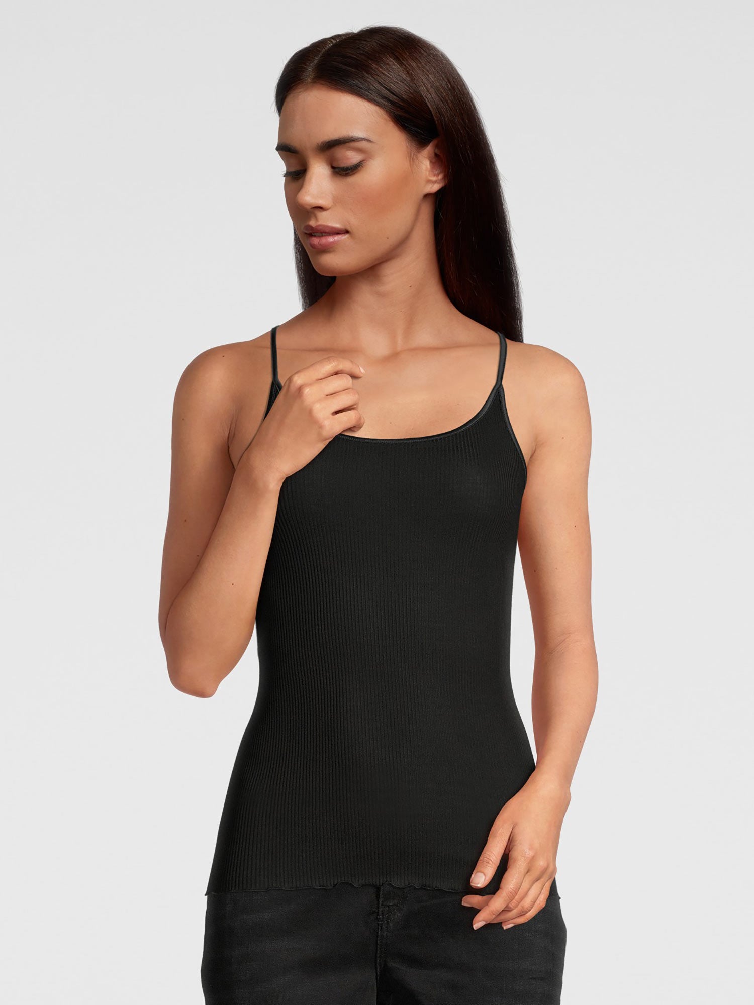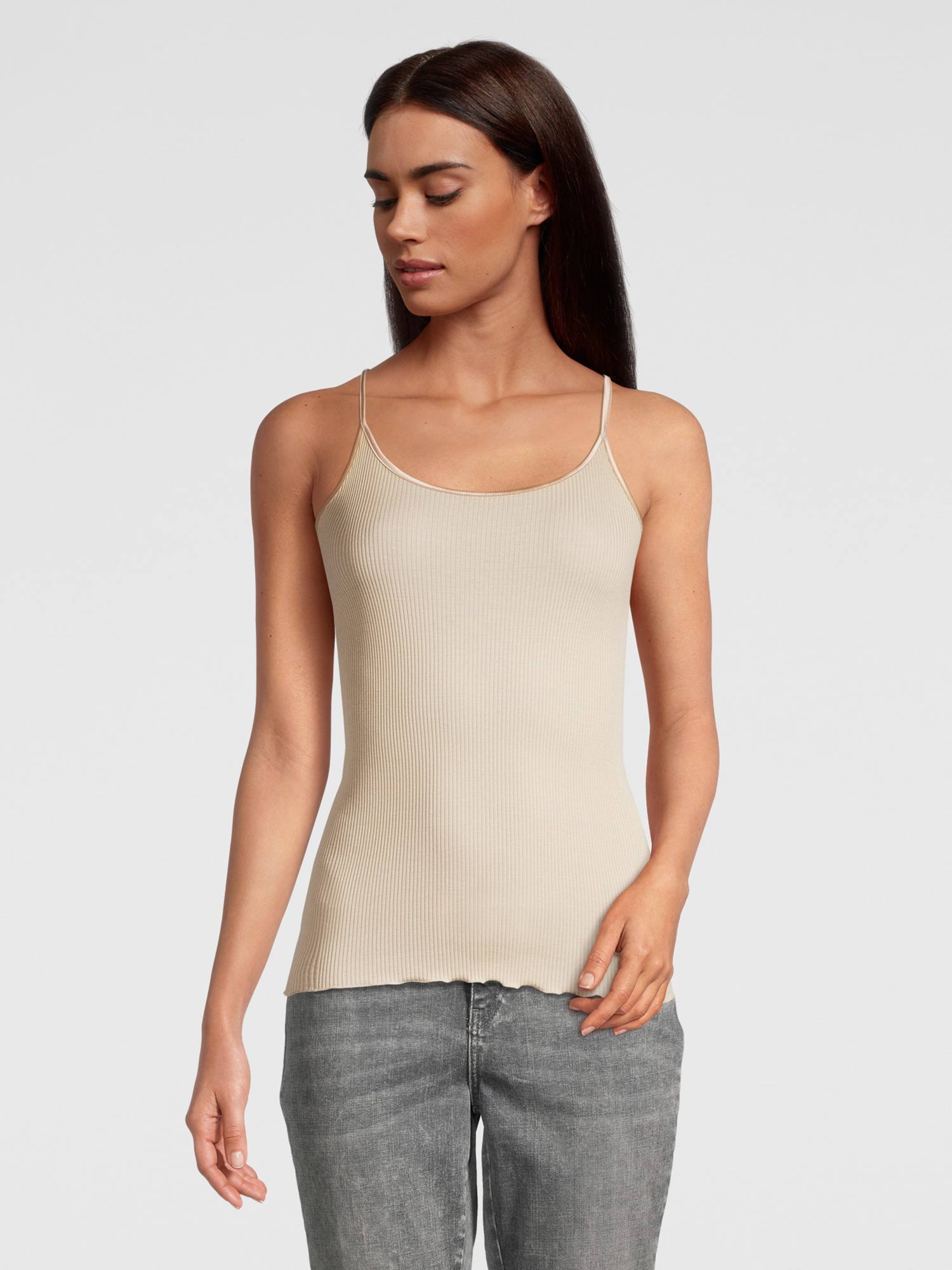 Delicato eppure espressivo: Questo Top a spaghetti in costina di alta qualità unisce materiali lussuosi a un'eleganza semplice. Realizzato in puro cotone Makò egiziano mercerizzato (Filoscozia®), si adagia dolcemente sulla pelle – setoso, traspirante e con una lucentezza naturale.