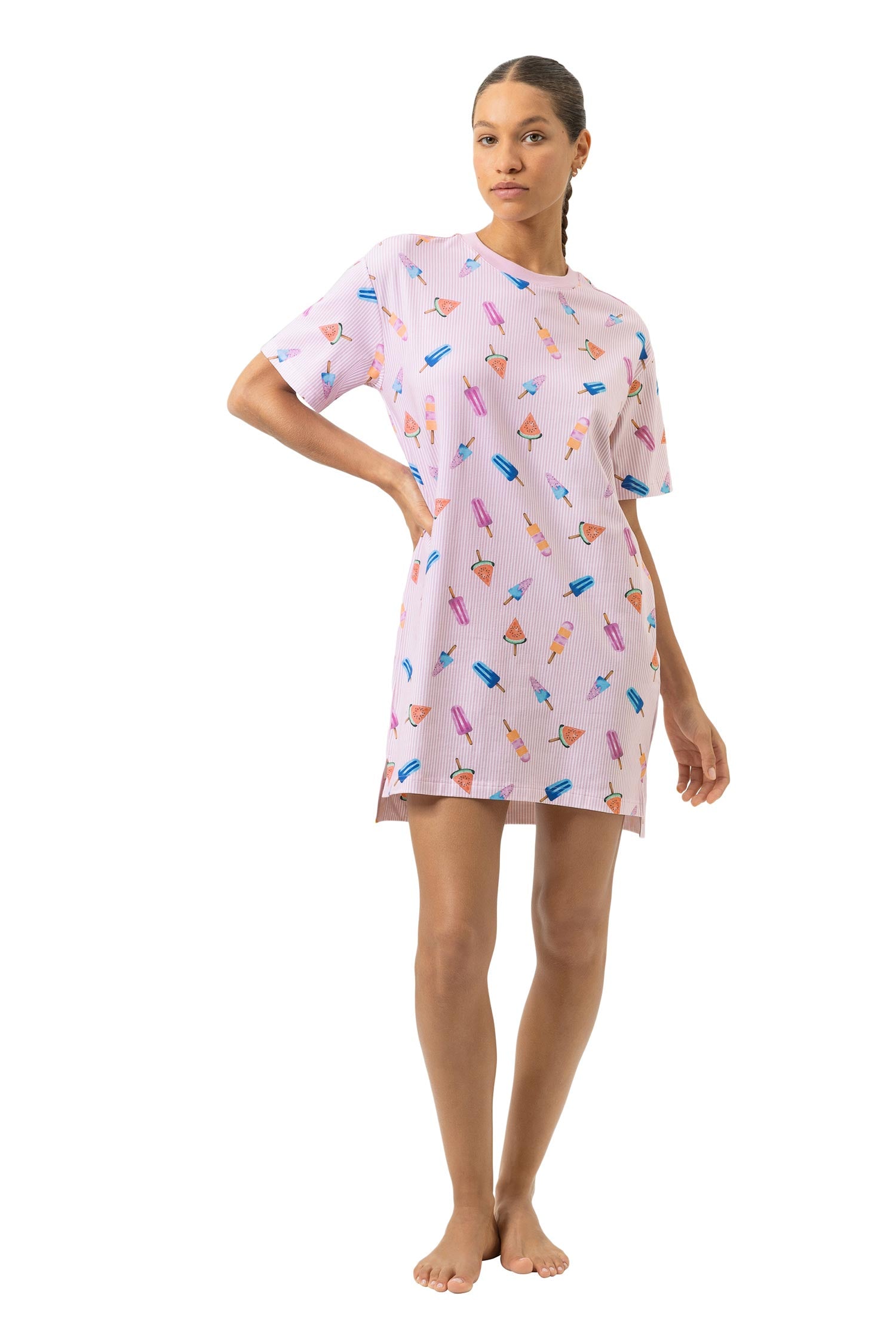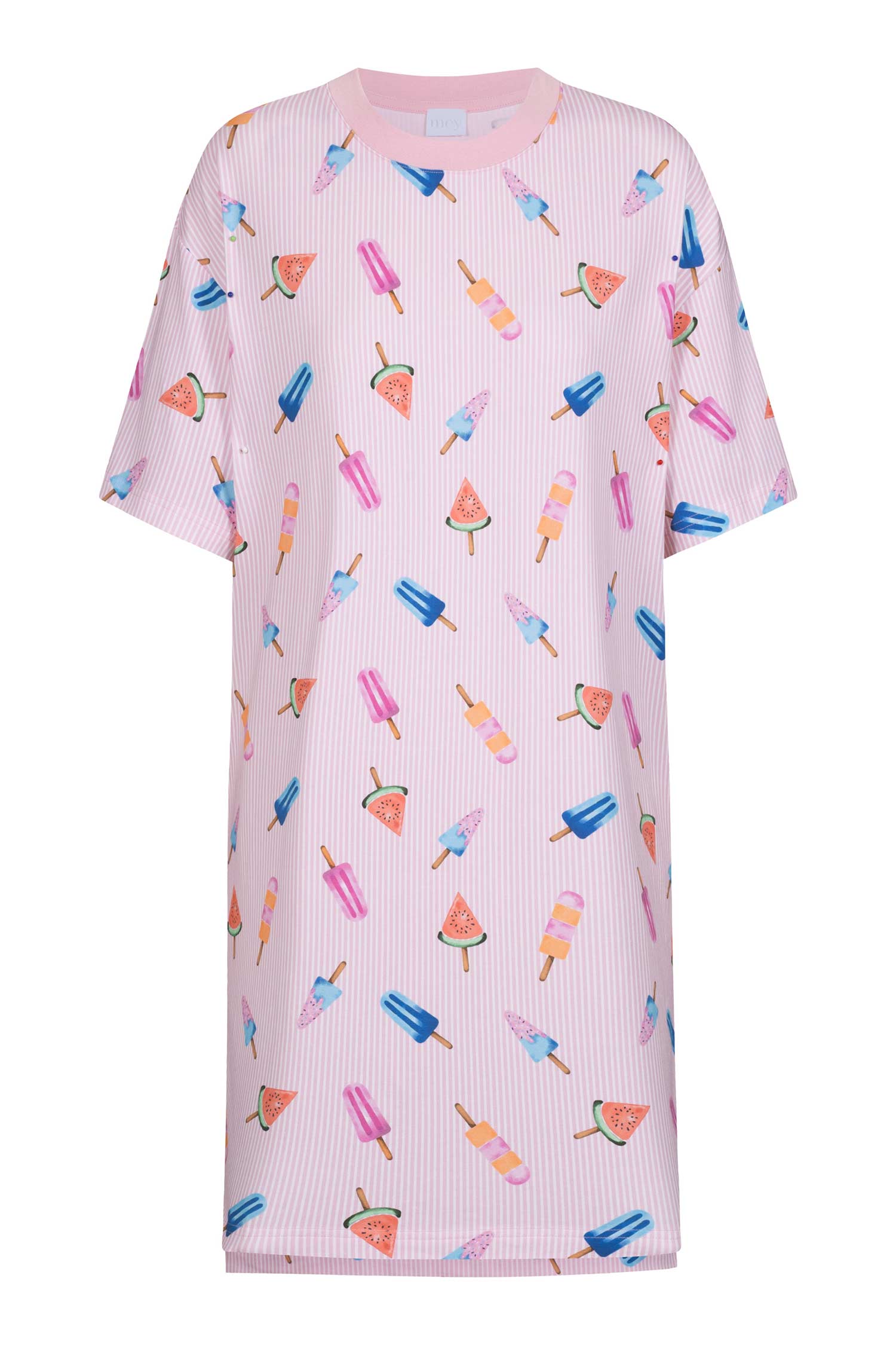 Camicia da notte casual in rosa soft, con stampa di ghiaccioli; dalla serie stagionale mey COOLING ICE