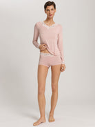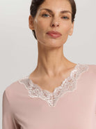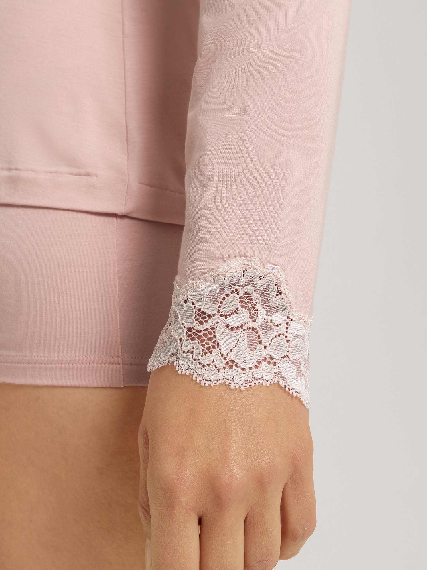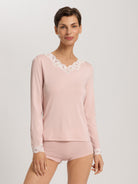 Herrlich weiches Langarm-Shirt mit spitzenbesetztem V-Ausschnitt, aus der saisonalen HANRO-Serie DANA