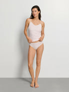 Der edle V-Ausschnitt mit Satin-Einfassung verleiht dem Design eine feminine Raffinesse, während die verstellbaren Satin-Träger mit feinen Metallschiebern für perfekten Sitz und individuelle Anpassung sorgen. Die nahtlose Verarbeitung – das Markenzeichen von HANRO – garantiert höchsten Komfort und eine makellose Silhouette unter jeder Kleidung.