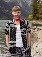 Dieses durchgeknöpfte Kurzarmhemd mit Brusttasche vereint echte Swissness mit lässigem Style. Im ikonischen Glarner-Tüechli-Look und mit viel Liebe zur Tradition designt, ist es wie gemacht für das Schwingfest 2025 im Glarnerland.