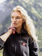 Ob auf dem Schwingplatz oder danach am Feuer – dieser schwarze Hoodie aus reiner Bio-Baumwolle für Damen und Herren hält warm und sieht stark aus. Der markante Glarner-Tüechli-Druck auf dem Rücken bringt Tradition mit modernem Streetstyle zusammen.