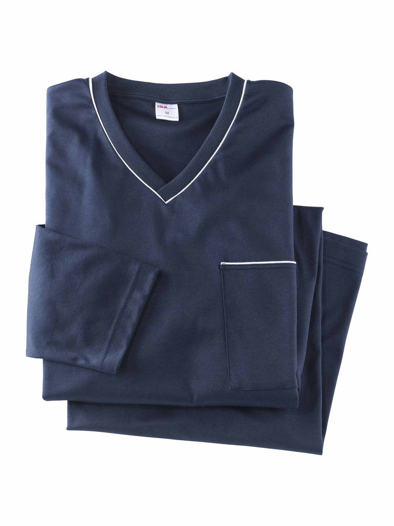 Das ideale Wohlfühlstück für den Herrn mit hohen Ansprüchen an Qualität, Verarbeitung und Komfort: langärmliges Nachthemd aus 100% Baumwolle "Swiss Cotton". Länge 110cm. Für jede Jahreszeit geeignet.