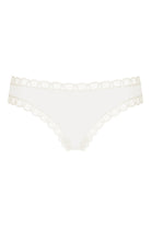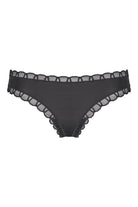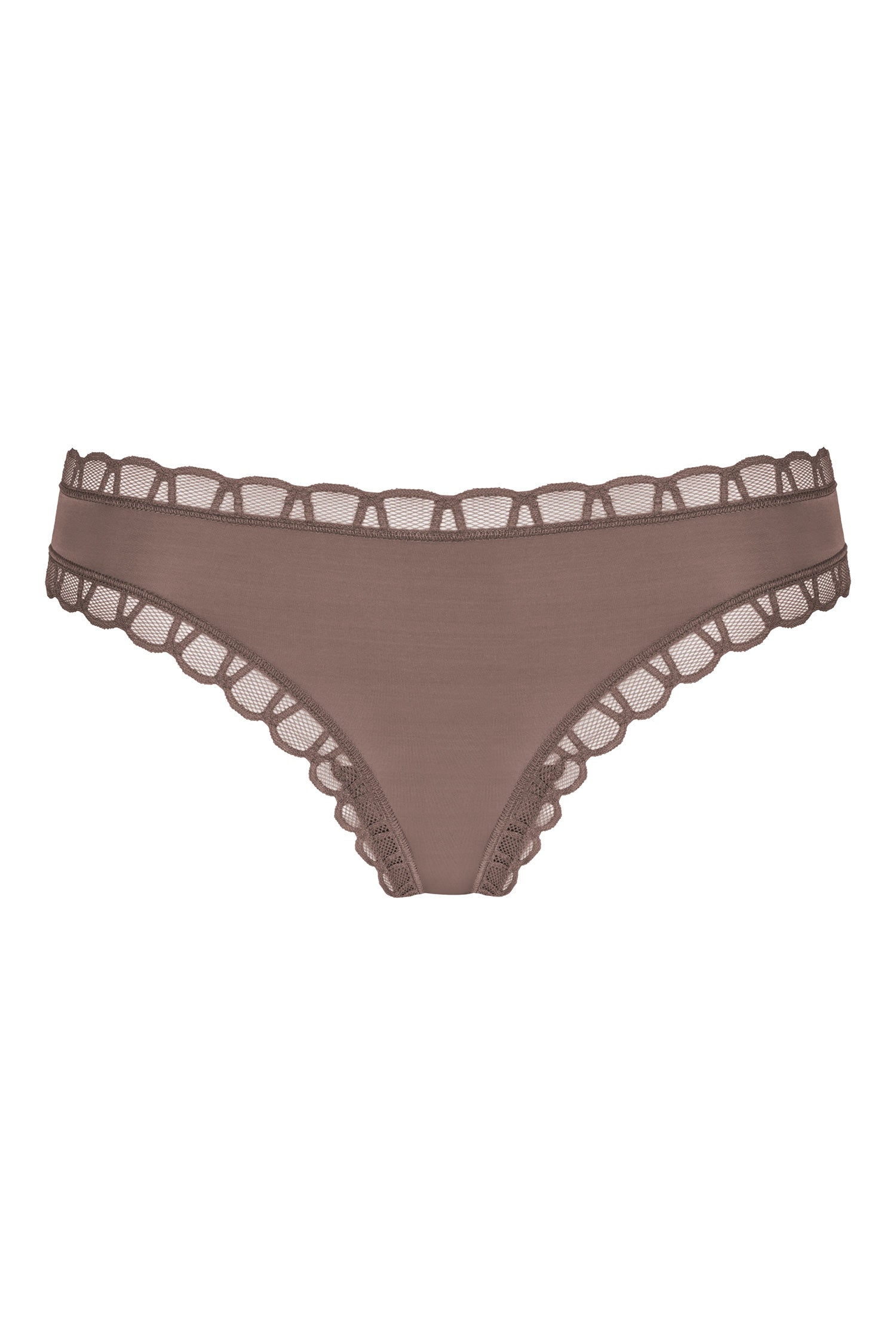 Feine Spitzenverzierungen an Bund und Beinausschnitt umrahmen die Silhouette mit subtiler Raffinesse und machen diesen Slip zu einem aufregenden Blickfang. Der tiefe, hüftige Sitz und der flache Bund sorgen für perfekten Komfort – ganz ohne einzuschneiden. Ein Baumwolleinsatz im Schritt verspricht angenehme Frische und ein vollendetes Trageerlebnis.