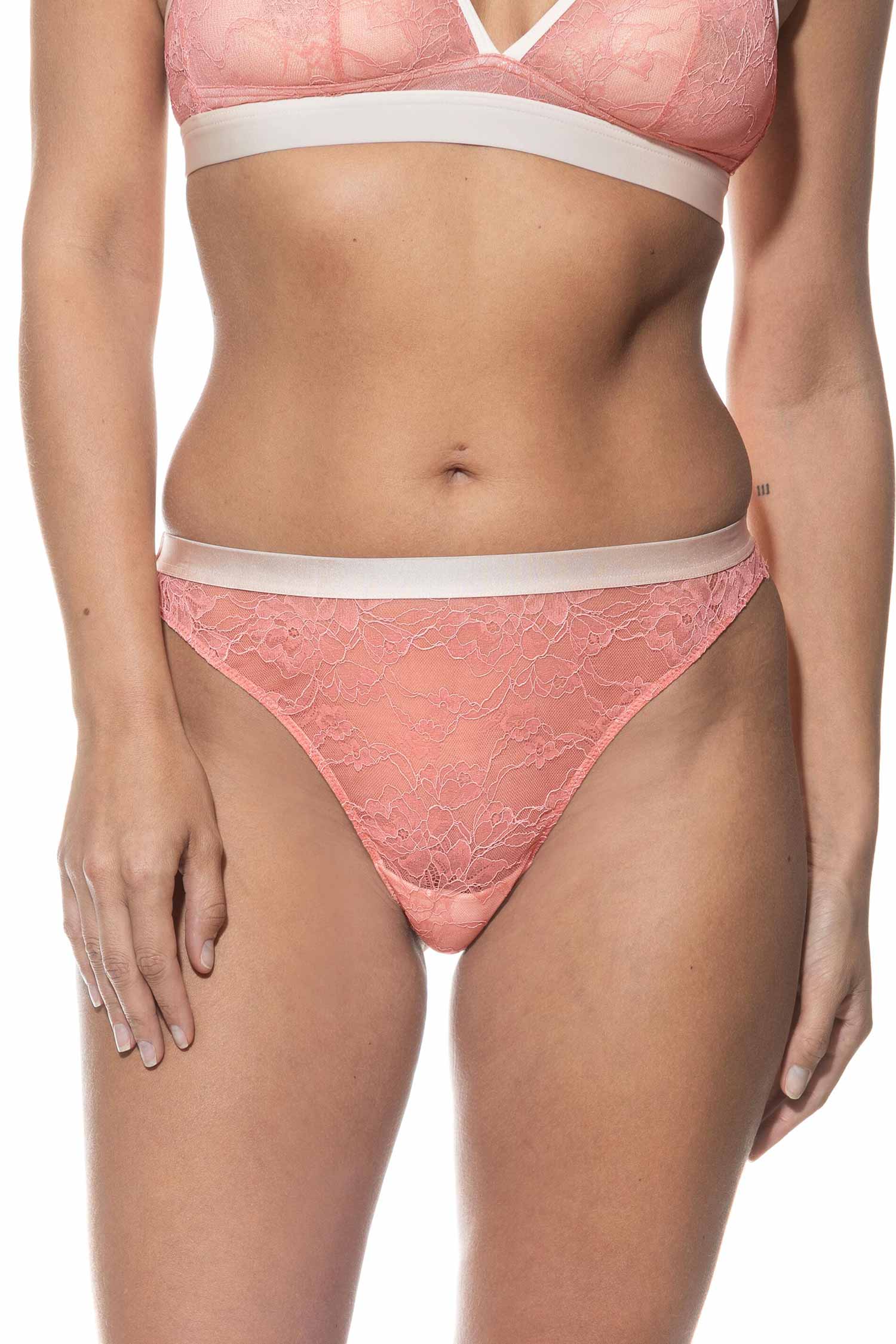 Die grosszügigen Spitzeneinsätze machen diesen String zu einem wahren Schmuckstück. Der farbige Gummibund und der hohe Taillensitz sorgen nicht nur für perfekten Halt, sondern unterstreichen auch Ihre feminine Silhouette. Ob als luxuriöses Highlight in Ihrer Dessous-Kollektion oder als sexy Überraschung: Dieser String verkörpert lebendige Frische und zeitlose Eleganz.