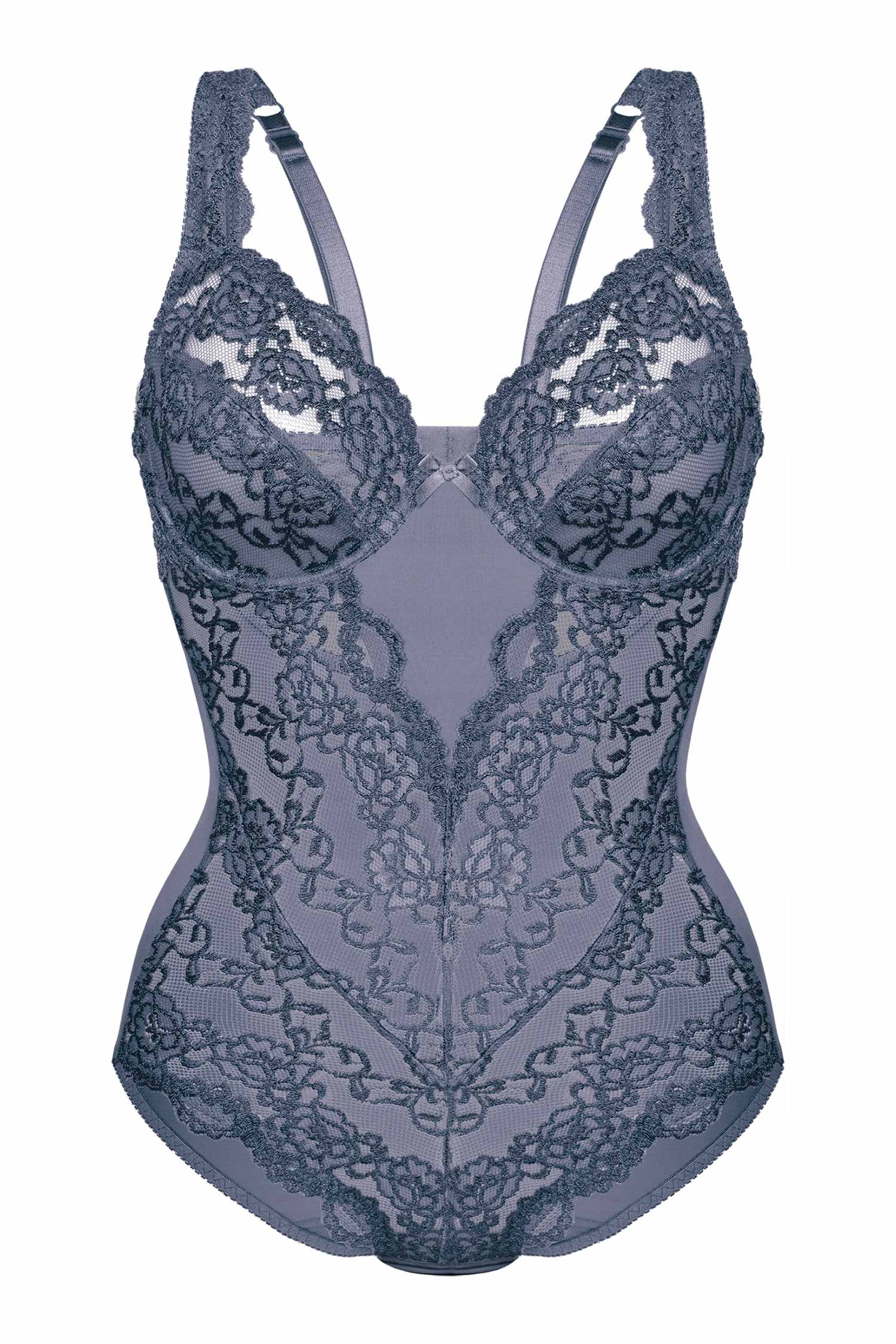 Die Vollschalen-Cups formen Ihre Brust sanft und sicher, während das weiche Futter im Untercup zusätzlichen Halt schenkt – ganz ohne Verzicht auf Leichtigkeit. Breite Spitzenträger schmiegen sich angenehm an Ihre Schultern und garantieren ein komfortables Tragegefühl. Der verstellbare Rücken aus feiner Spitze passt sich perfekt an Ihre Figur an und sorgt für einen sicheren Sitz. Dieser Body ist mehr als Wäsche – er ist ein Versprechen: an Ihren Stil, an Ihr Selbstbewusstsein, an Ihre Weiblichkeit. CLASSIC LACE – pure Verführung zum Anziehen.