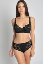 Hochgezogene, breite Spitzenträger garantieren optimalen Halt, während das weich unterlegte Untercup-Futter für sanfte Formgebung und angenehmen Komfort sorgt. Der sinnlich gestaltete Spitzenrücken rundet das Design mit stilvoller Finesse ab. Ein BH wie gemacht für Damen, die ihre Schönheit und ihr Selbstbewusstsein mit der passenden Wäsche zum Strahlen bringen möchten!