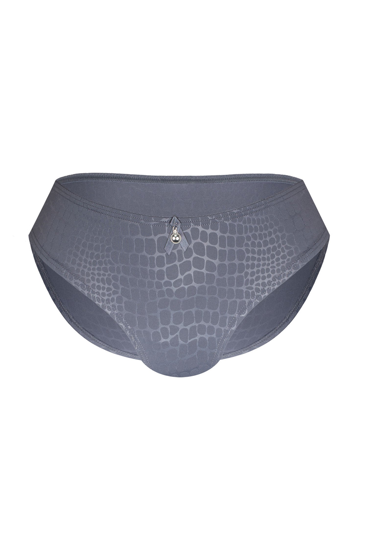 Die besonders flache Beinverarbeitung ohne Gummi fühlt sich an wie eine zweite Haut – nichts drückt, nichts zwickt, alles sitzt. Und das mit Stil: Das raffinierte Matt-Glanz-Muster im Animal-Look sorgt für subtile Wildheit, während der funkelnde Zierstein im silbernen Accessoire einen aufregenden Akzent setzt. Ob Sie sich leise durch den Tag bewegen oder ihn im Sturm erobern – dieser Slip bleibt bei allem Ihr treuer Verbündeter.