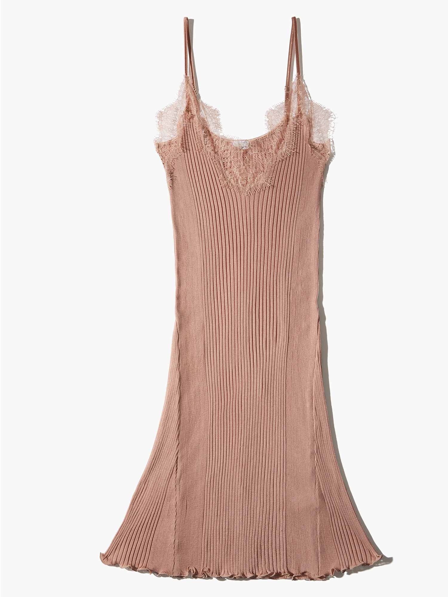 Ein dezent glänzendes Band fasst den Rückenausschnitt, die Rückseite der Armausschnitte sowie die dünnen, verstellbaren Träger ein. Durch die spezielle Strick- und Nähtechnik ist der Saum hübsch gekräuselt. Ein ikonischer Klassiker für besondere Momente!