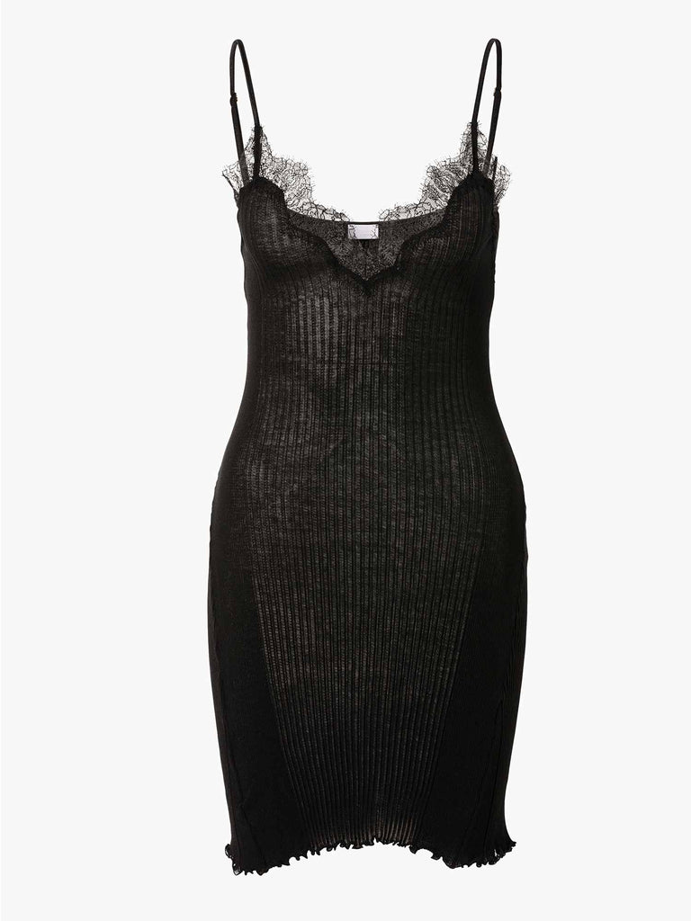Ein elegantes und aussergewöhnlich feines Negligé aus dem unvergleichlich dünnen Richelieu-Feinrippstoff mit zwei unterschiedlich breiten Rippen. Ausgeschmückt wird der edle Bodydress mit einem zarten Eye-Lash-Spitzeneinsatz. Die schmale Rippenstruktur an den Seiten und die breitere Rippenstruktur im Front- und Rückenbereich sorgen für eine perfekte, körperbetonende Passform.