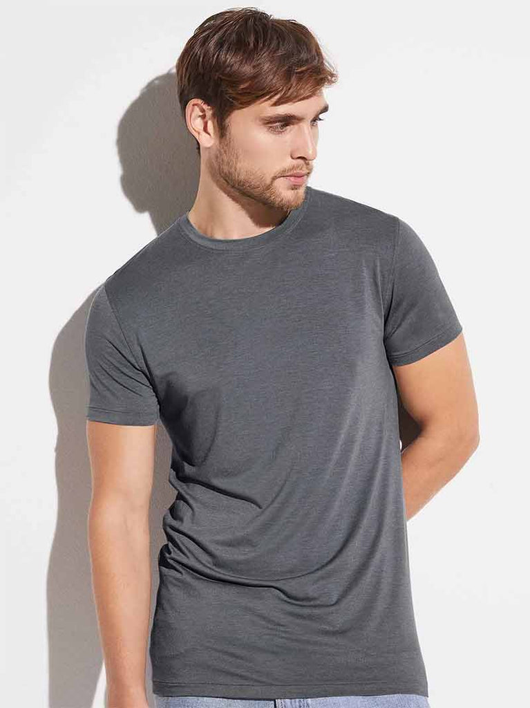 Dieses Shirt aus Mikromodal überzeugt mit edlem Glanz und breiten Einfassbändern an Hals- und Armausschnitten. Modal wird aus Buchenholz-Fasern hergestellt und nimmt bis zu 50% mehr Feuchtigkeit auf als Baumwolle. Für höchsten Komfort sorgt der Elasthan-Anteil.