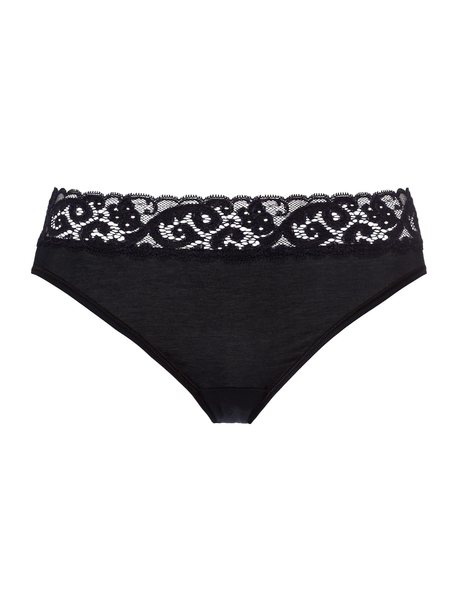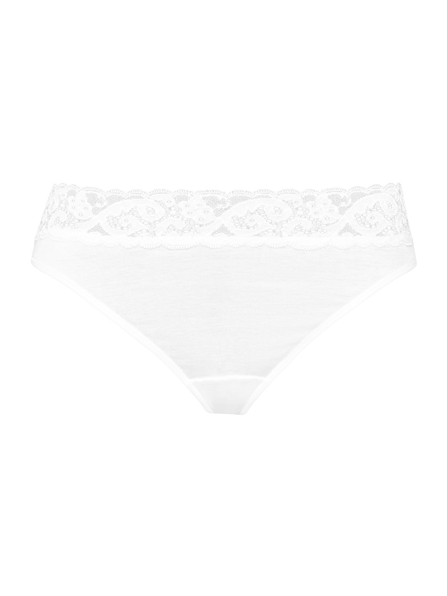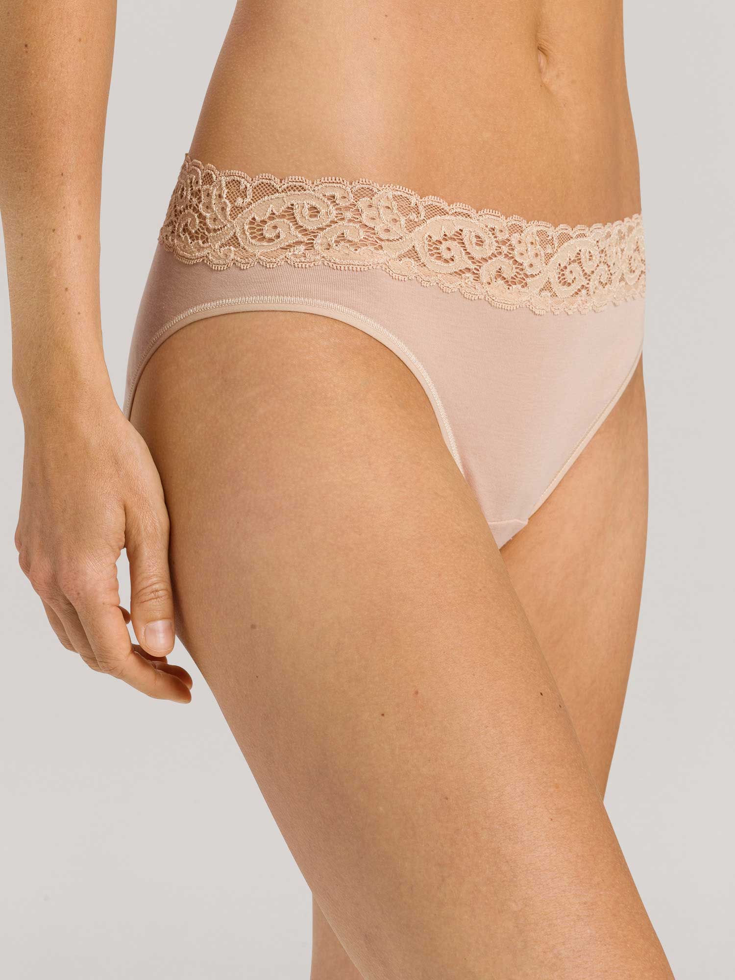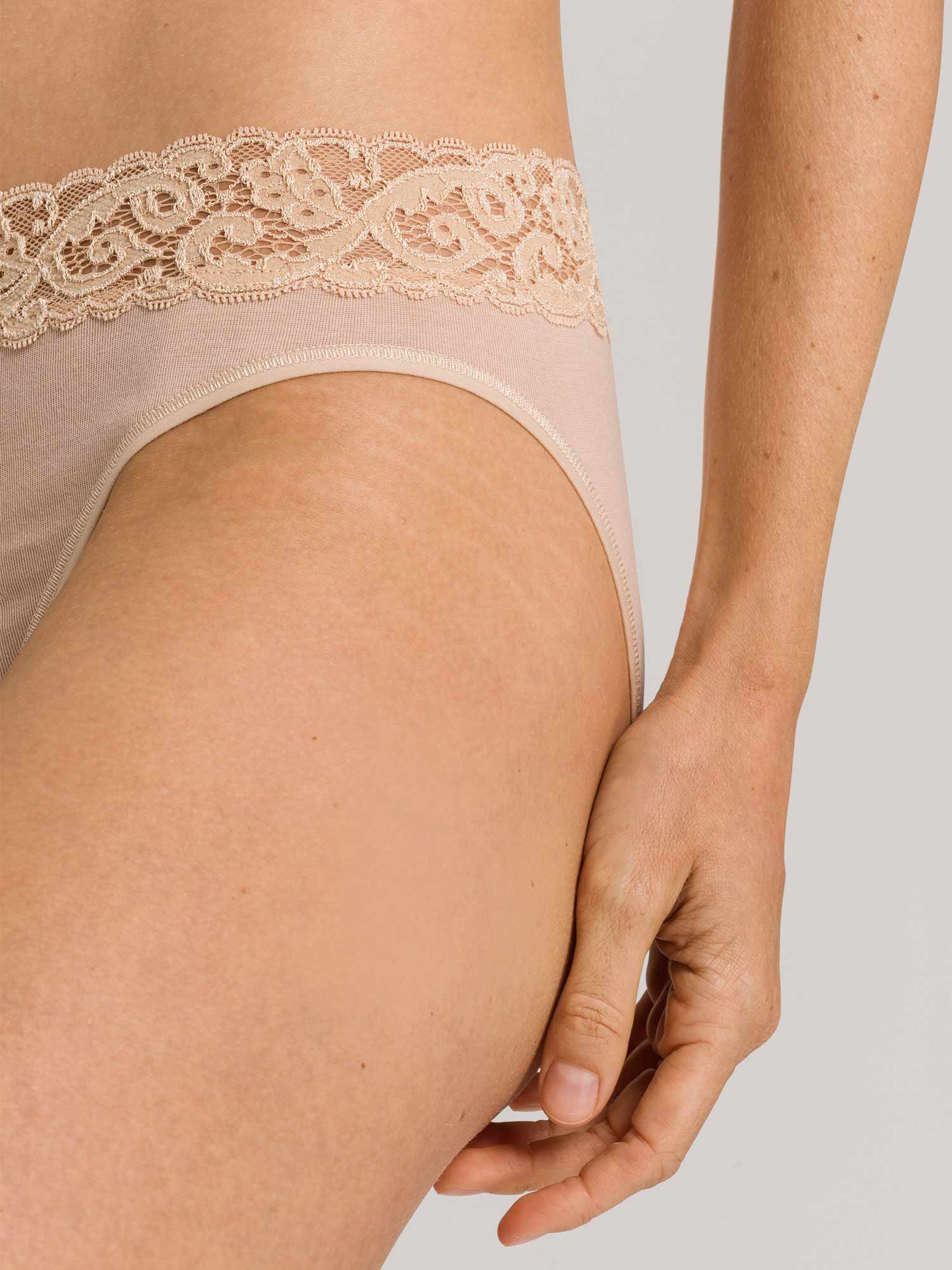 高贵而女性化——高腰迷你内裤,低腰带上饰有迷人的法国蕾丝,非常适合搭配低腰牛仔裤和低腰服装。迷你内裤由超柔软的100%瑞士棉制成,经过丝光处理,具有高开叉设计,使腿部显得更长更纤细。