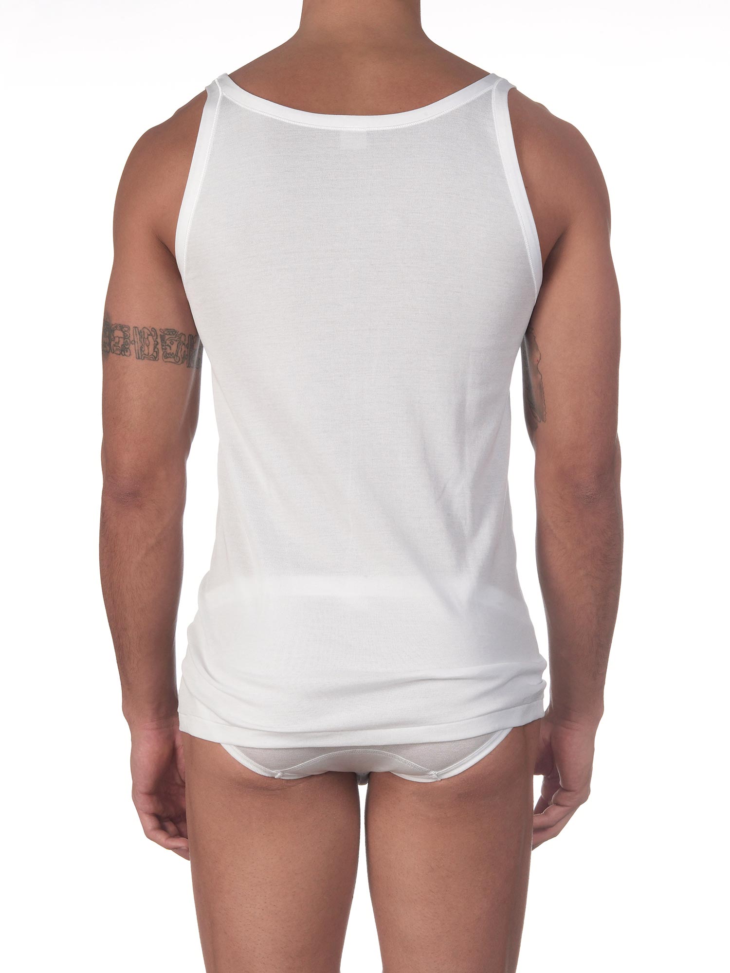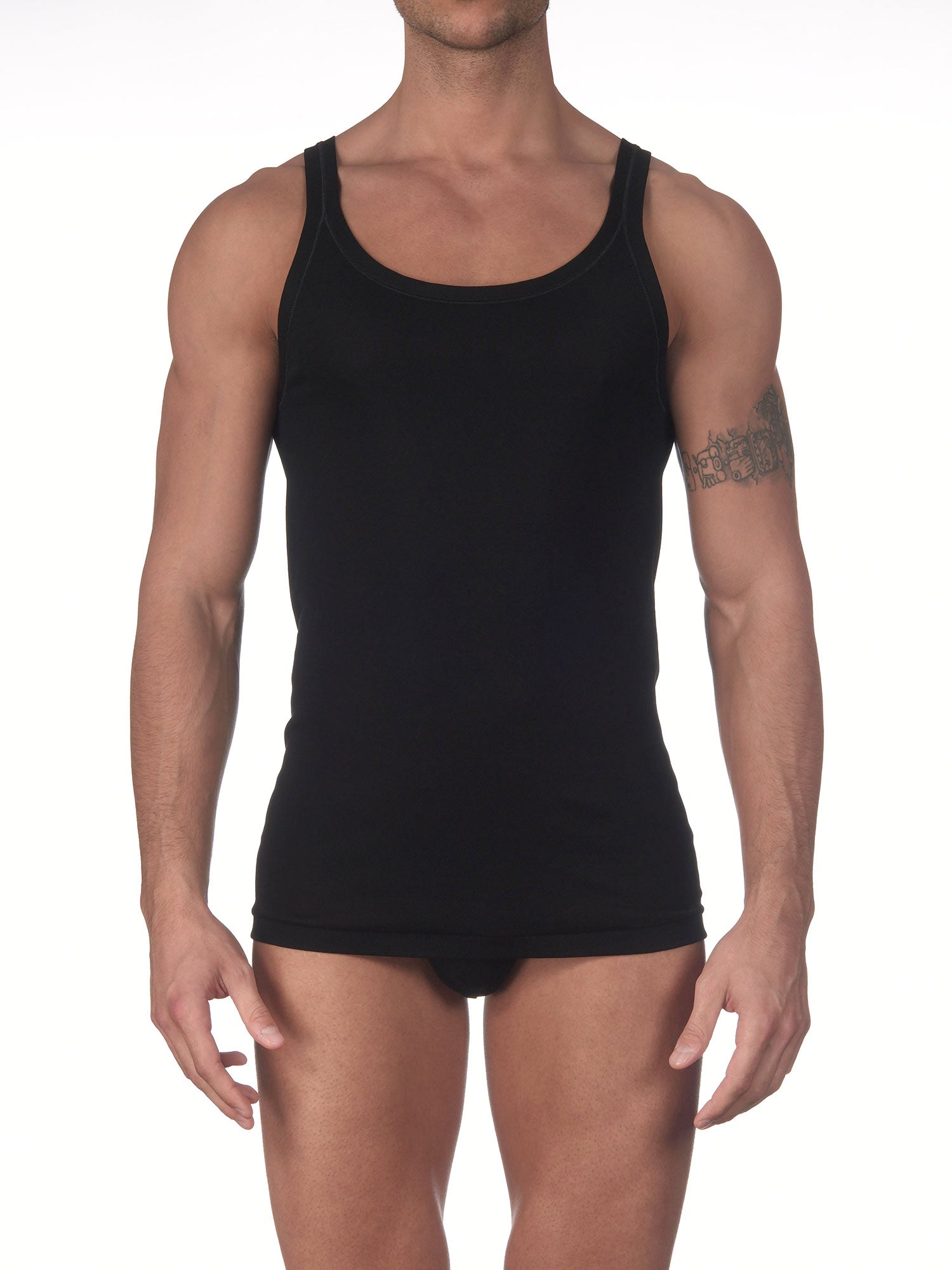 Maskulines Tanktop mit schmalen Trägern, aus feinster Makò-Baumwolle; aus der Serie FILOSCOZIA von Oscalito