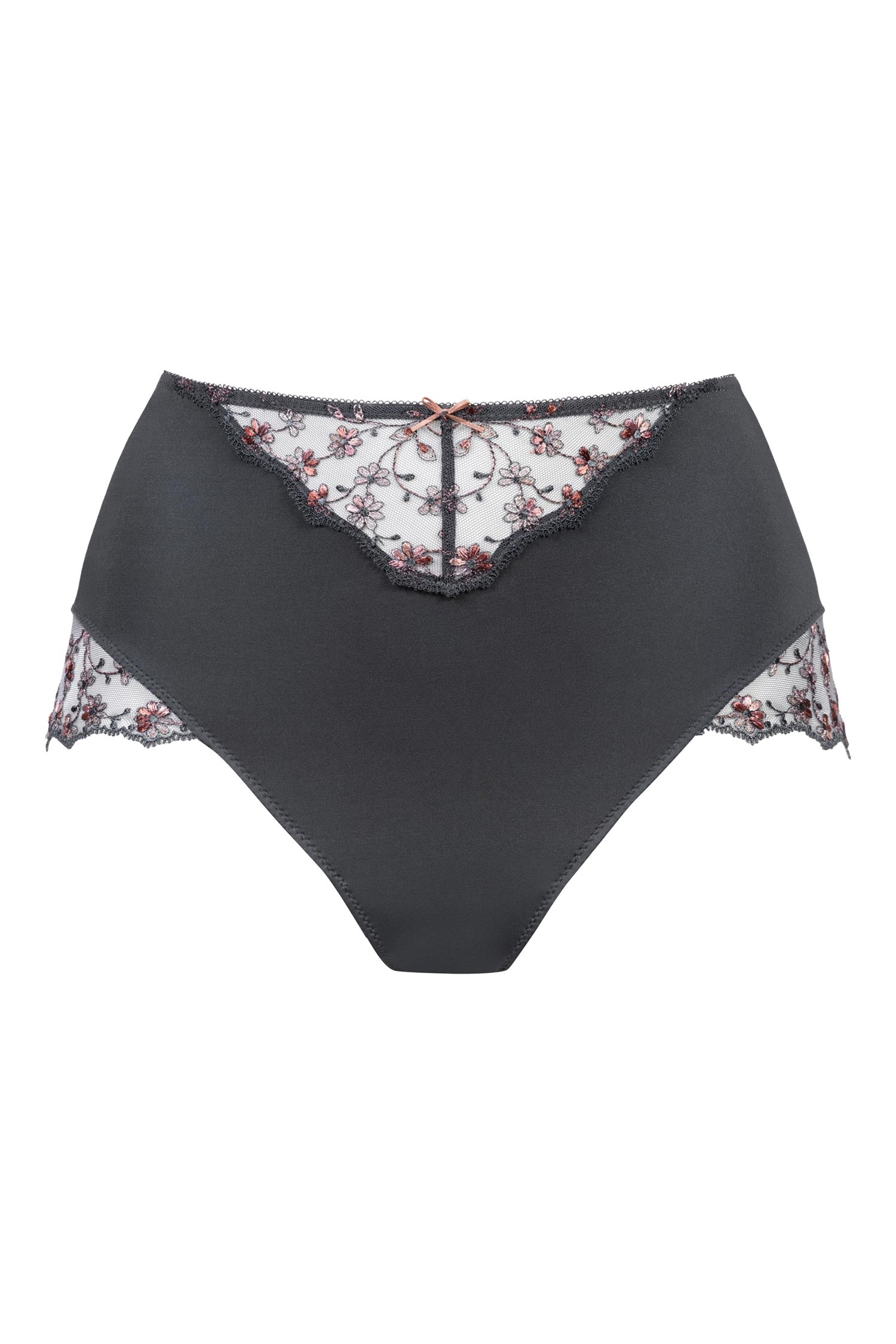 在高贵的雷霆灰色中,细腻的图案蕾丝显得格外美丽。前后侧部精心装饰,为滑倒增添了女性的精致,每一个动作都优雅随行。平坦的腰带防止勒痕,确保滑倒整天舒适地固定在适当的位置。