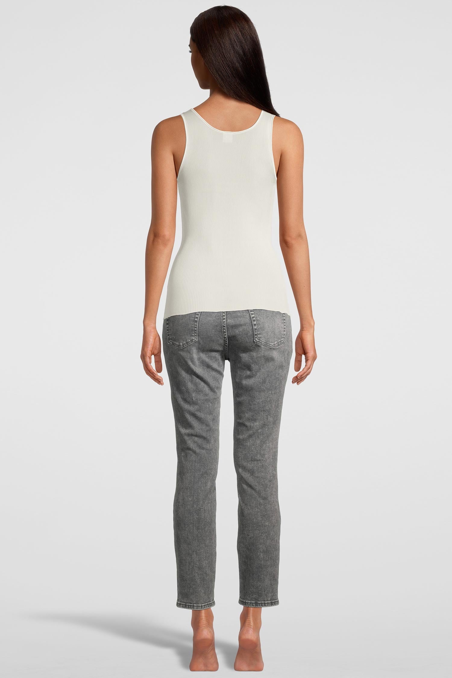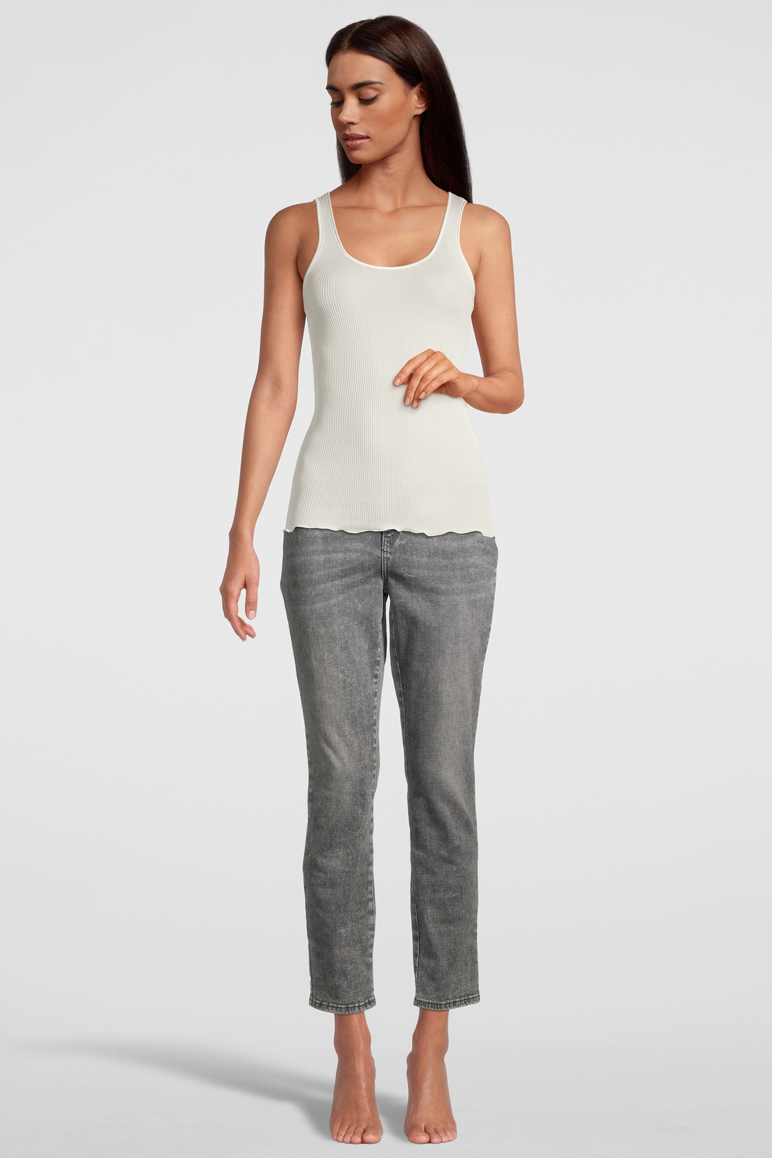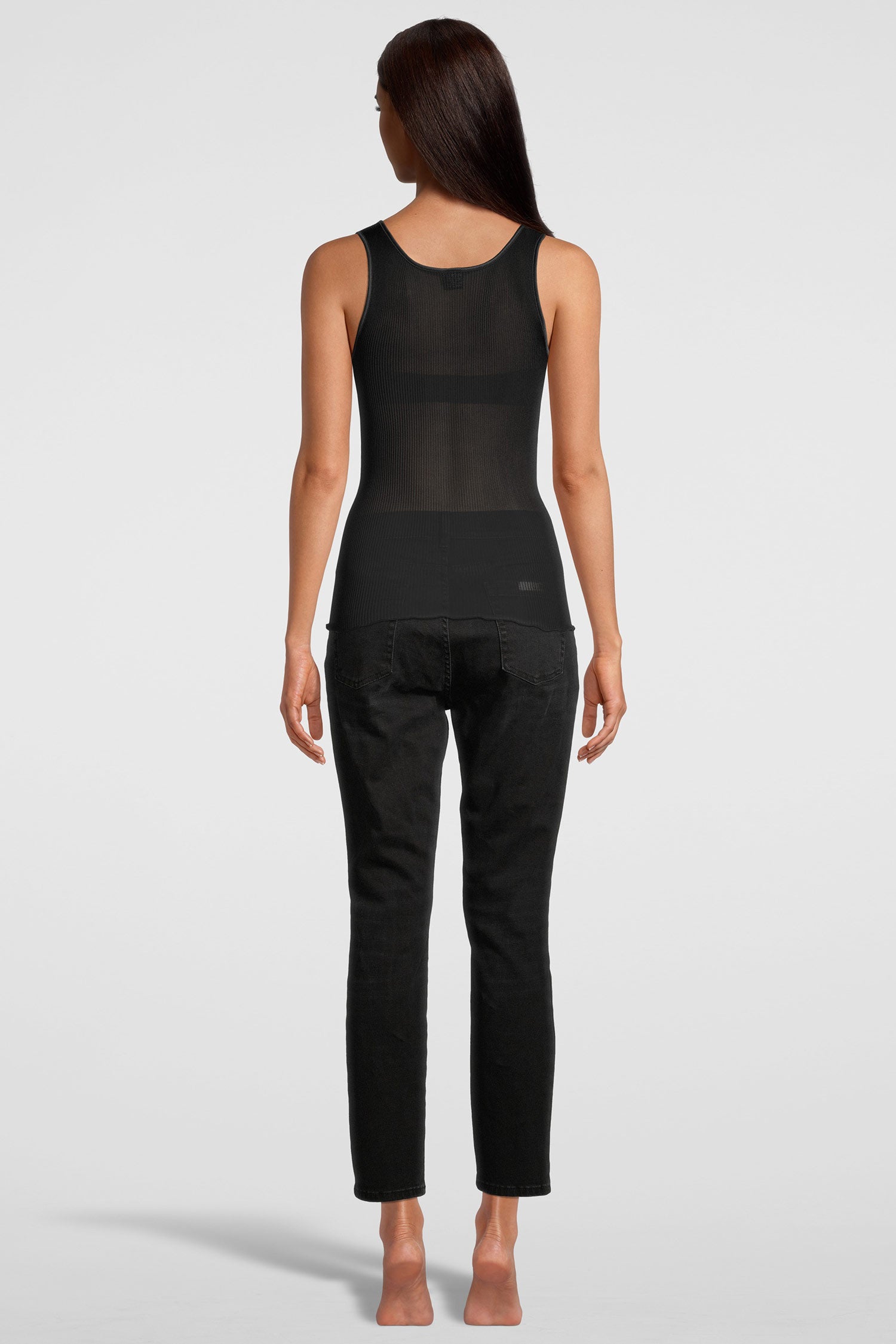 这款顶部凭借其略显透明的外观和略微波浪形的下摆打动了所有重视特别之处的女士们。为了最大程度的穿着舒适度,这款背心没有烦人的侧缝。理想的内衣,也可以作为漂亮的单件穿着。