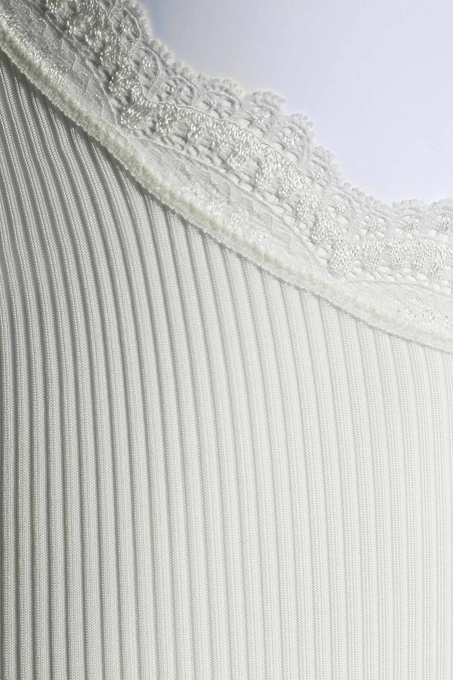 您的身体将爱上这款背心的奢华经验!它由纯净高贵的丝绸制成,采用细腻的罗纹欧根纱针织面料,并饰以来自法国的细腻弹性Leaver蕾丝,认证为真正的“Dentelle de Calais®”,这件上衣以一种不可抗拒的诱惑力令人着迷。