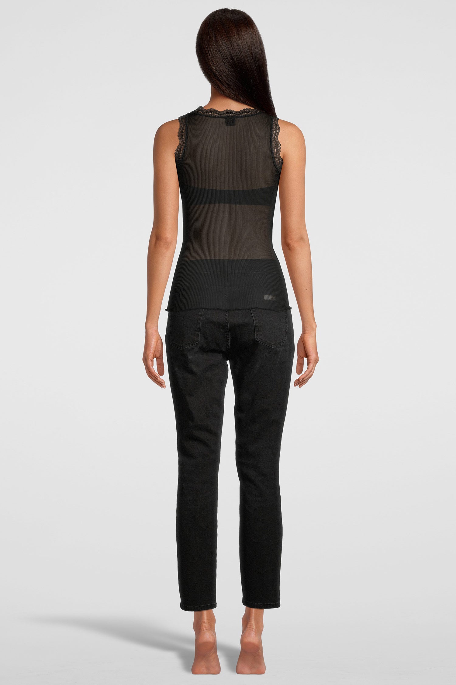 精致的Tank-顶部,带有细腻的蕾丝,采用纯丝绸制成;来自Oscalito的PURE SILK系列