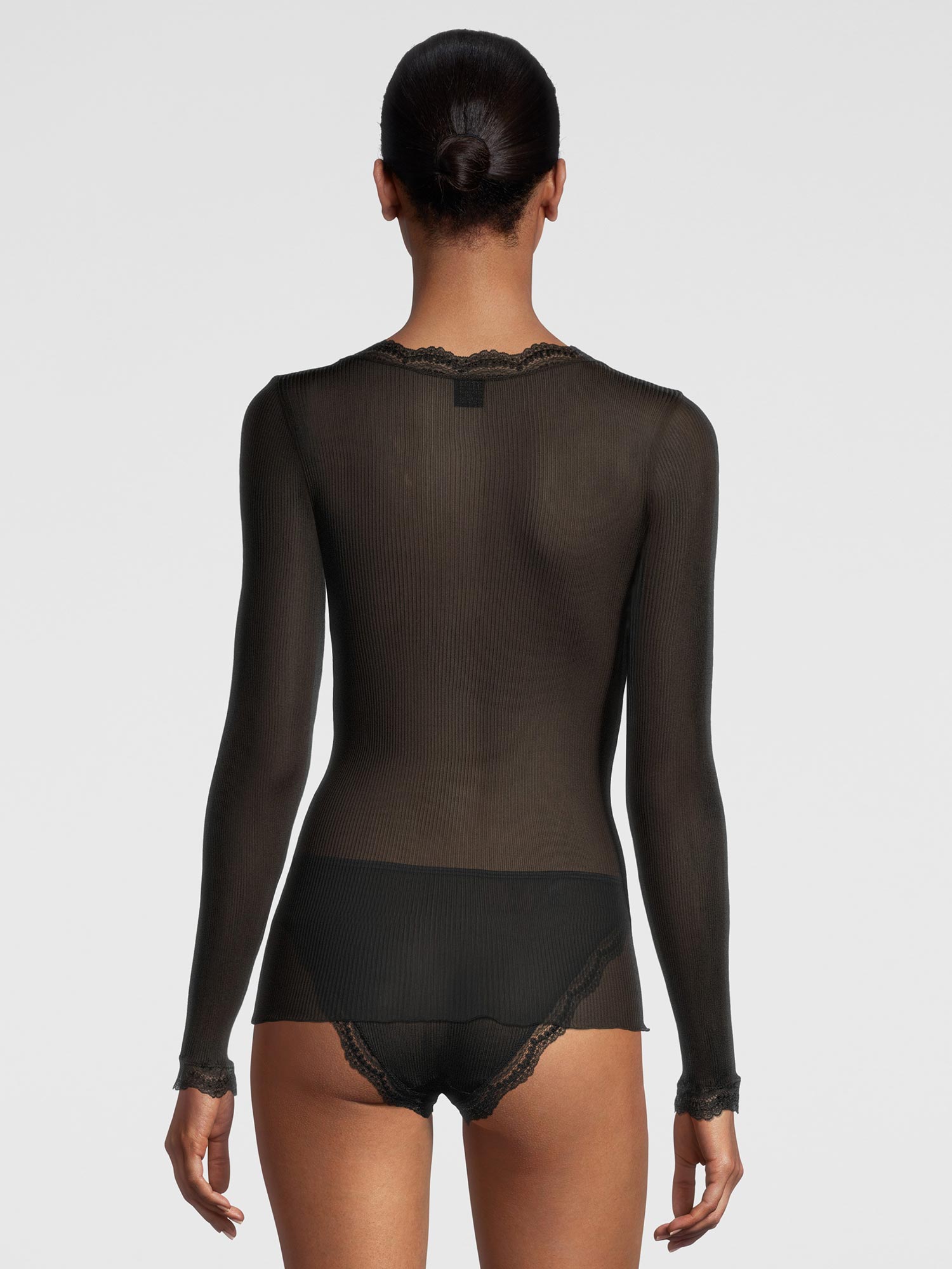 时尚的设计,优雅的蕾丝装饰领口,使这款上衣用途广泛——可作为轻盈的、温度调节的内衣,或作为外套下的优雅层搭件。对于追求风格的女性来说,这是一款必备单品,能带来非凡奢华的肌肤感受!