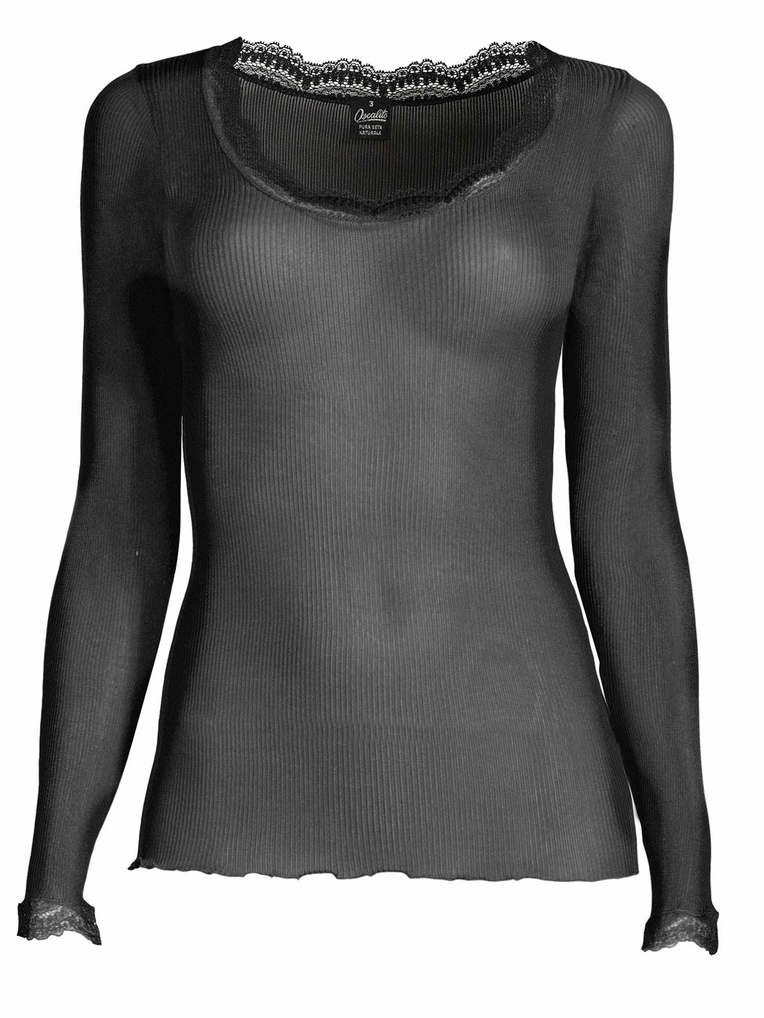 高贵的长袖衬衫,采用纯丝绸制成,饰有迷人的圆领蕾丝,来自Oscalito的PURE SILK系列