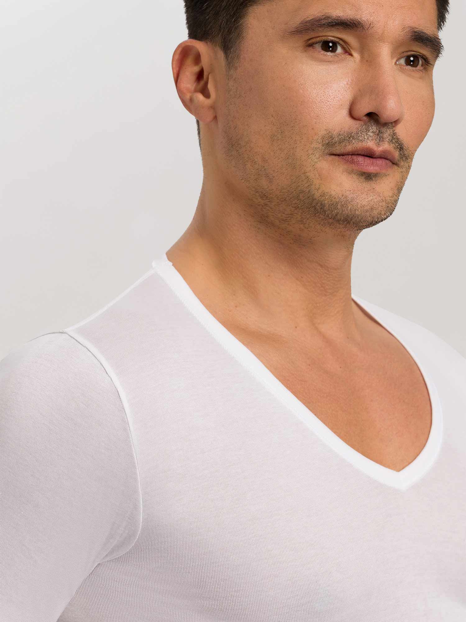 V领T恤(1/2袖)由100%皮马棉制成,无侧缝,来自HANRO的COTTON PURE系列
