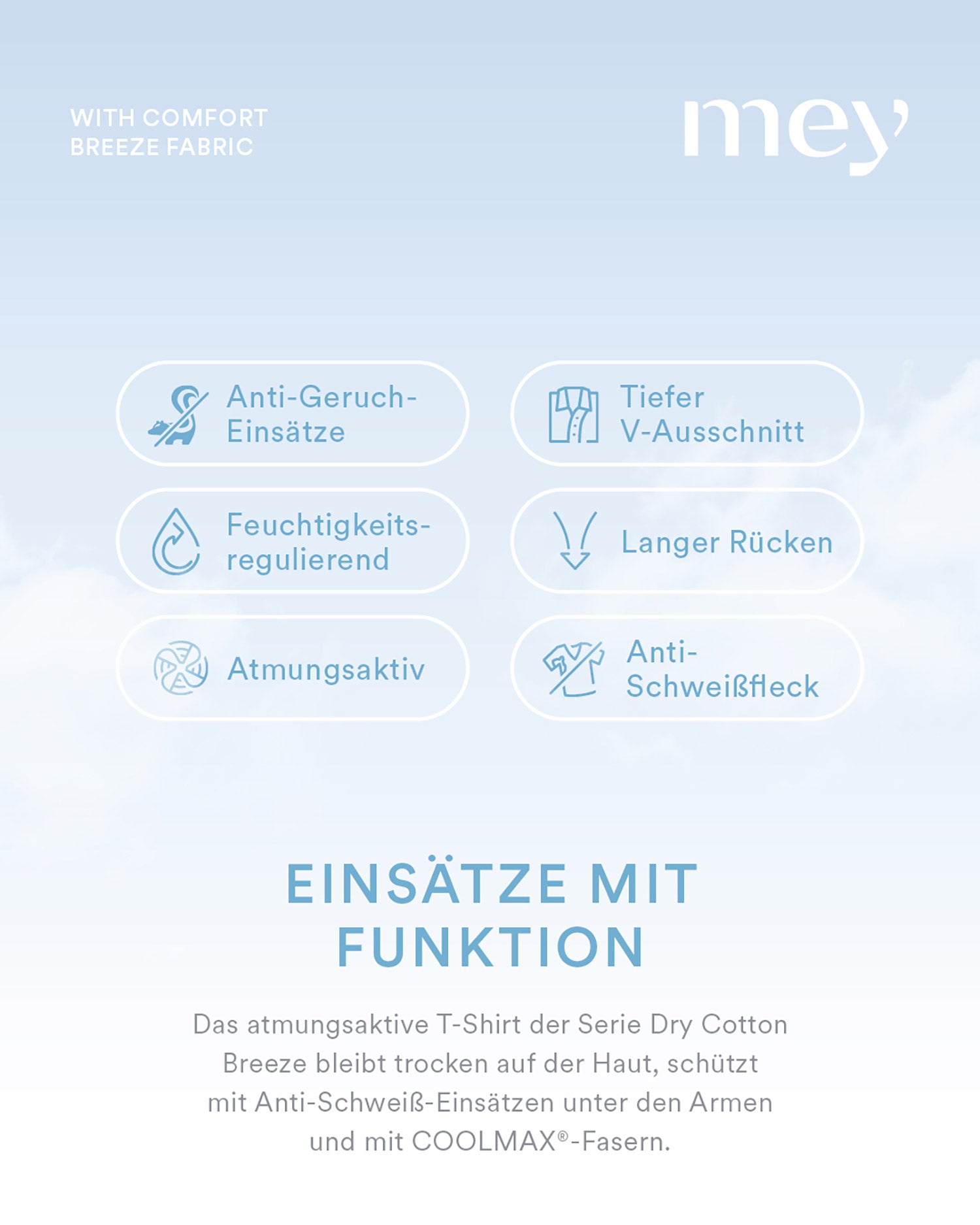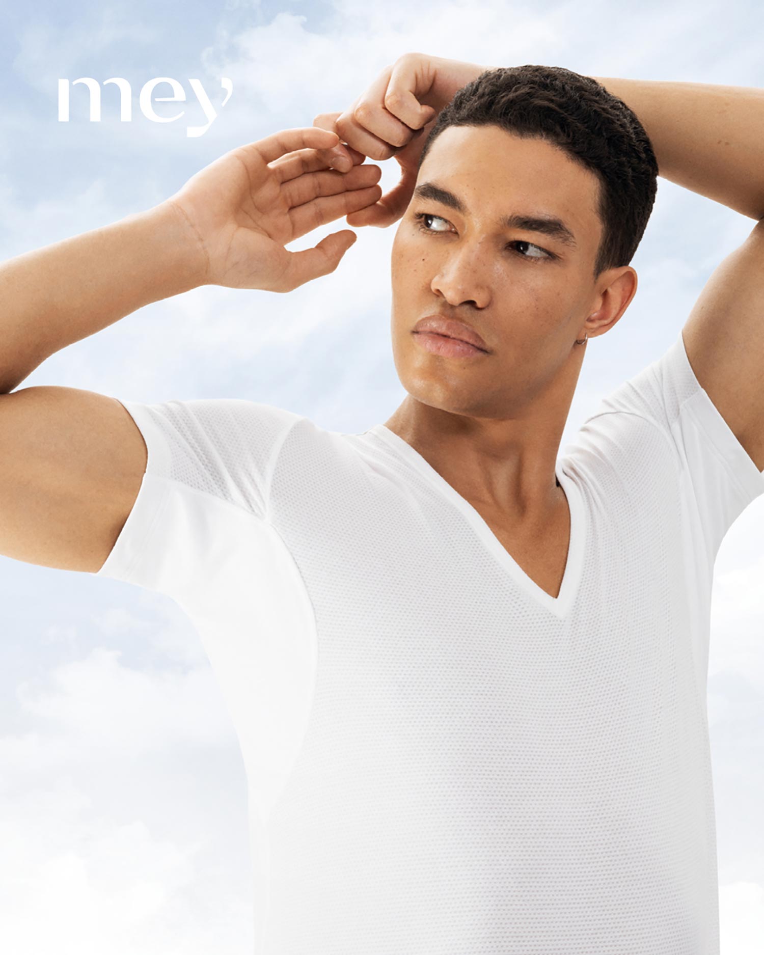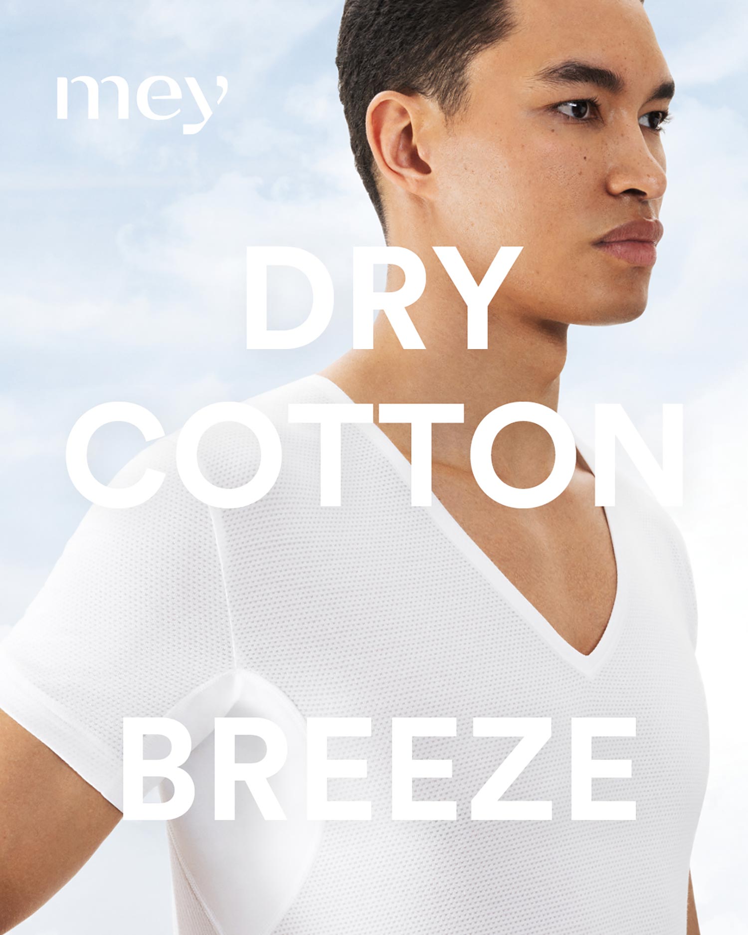 V领衬衫,带有精细的透气孔和防汗垫,来自mey的DRY COTTON BREEZE系列
