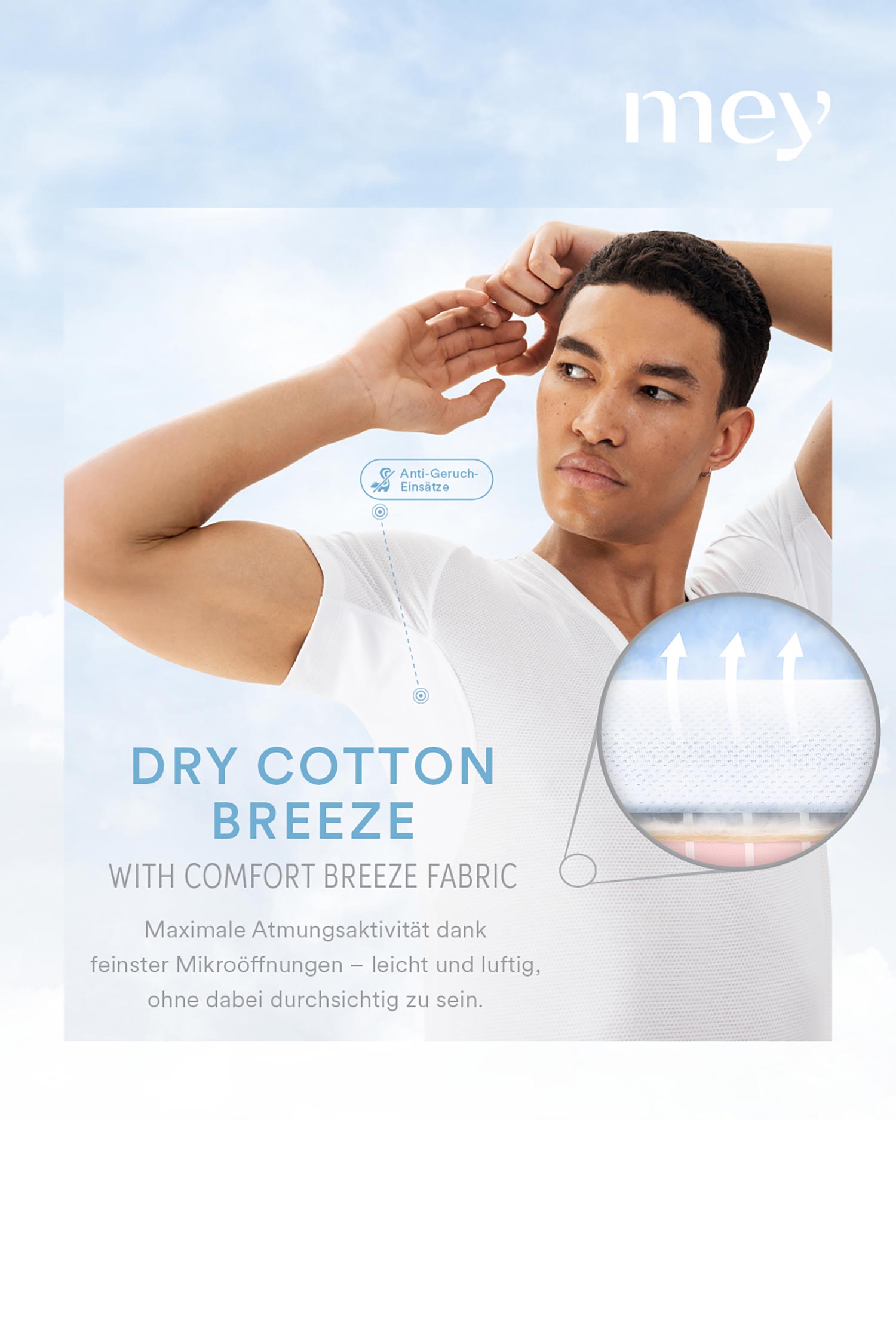 来自DRY COTTON BREEZE系列的透气T恤在肌肤上保持干爽,腋下的防汗垫保护,Coolmax®纤维调节湿度。