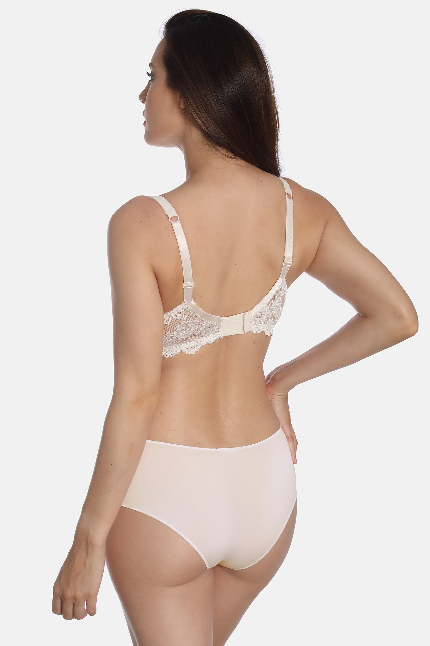 优雅的花卉蕾丝配以高贵的哑光光泽效果为杯子增添了奢华的气息,而更高的中间部分和带有内置支撑条的塑形蕾丝背部提供了最佳支撑。不论是经典穿着,还是通过额外的肩带配件时尚变化——这款胸罩都能适应您的风格和服装,让您在任何场合都闪耀。每天都享受一份细腻的奢华!