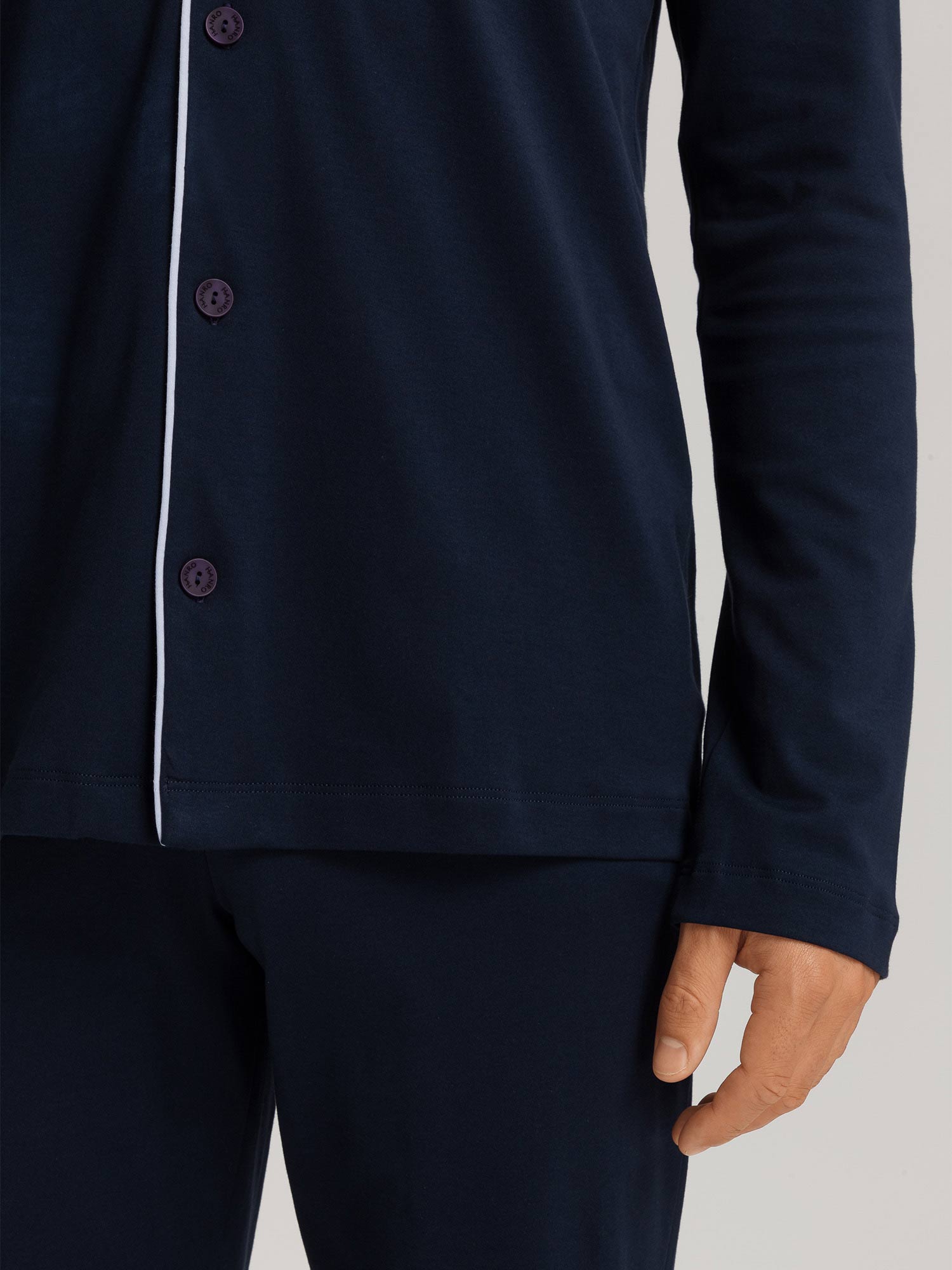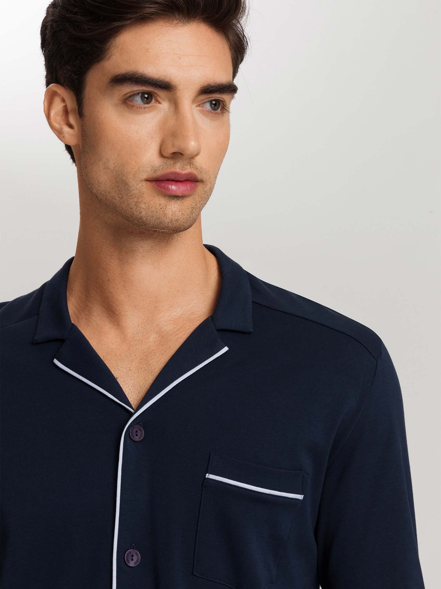 全纽扣上衣配有精美的对比色滚边和实用的胸袋,为这款睡衣增添了精致的气息,而现代的剪裁和高品质的工艺使其成为真正的多面手。无论是睡觉还是休闲,这款睡衣都将功能性与独特风格结合在一起。