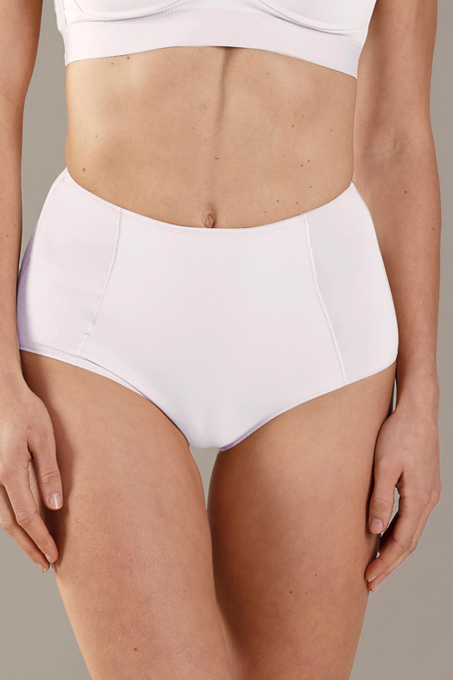 纵向弹性的前面板和束腰处理中的平缝提供平滑、均匀的线条,而超平腿部边缘防止在紧身衣物下显现。高腰设计与覆盖臀部的合身剪裁提供额外的安全感和女性化的穿着舒适度。由于高棉含量,滑倒透气、特别亲肤且柔软舒适。享受既能塑形又能宠爱的内衣,让您在自己的肌肤中感到同样舒适和美丽。