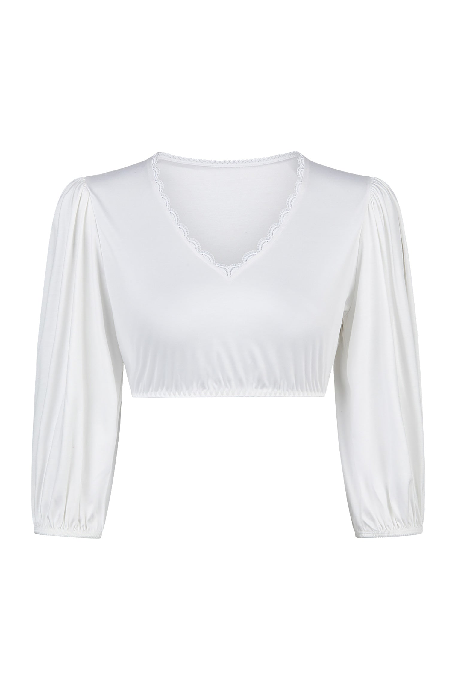 女性化的V领搭配精致的蕾丝边,为上衣增添了一抹浪漫的色彩,而3/4长的泡泡袖配有柔和的褶皱和弹性袖口,营造出迷人的轮廓。得益于胸部下方的弹性下摆,Sandra 完美贴合,不易滑动——是每件Dirndl的可靠伴侣。