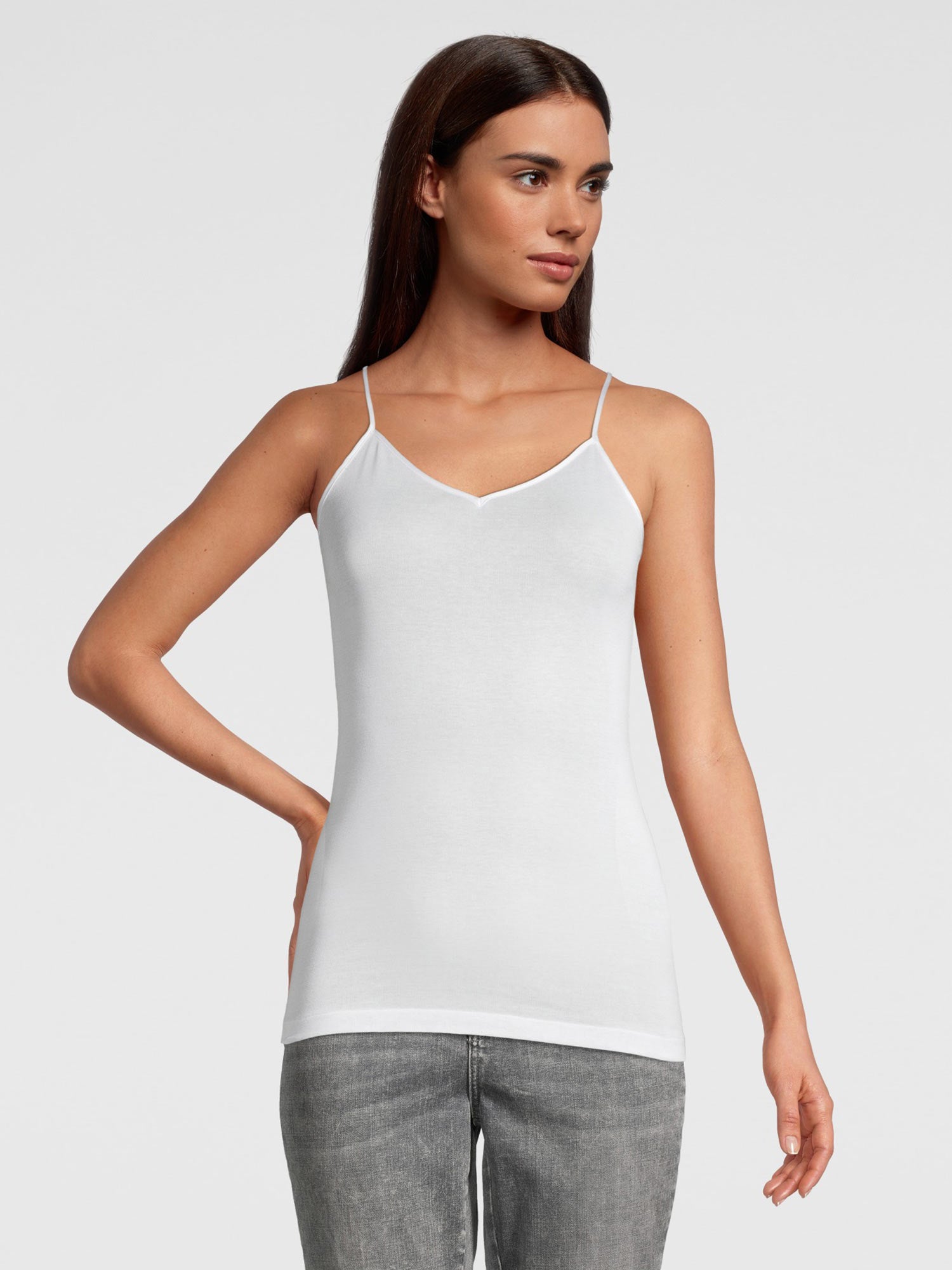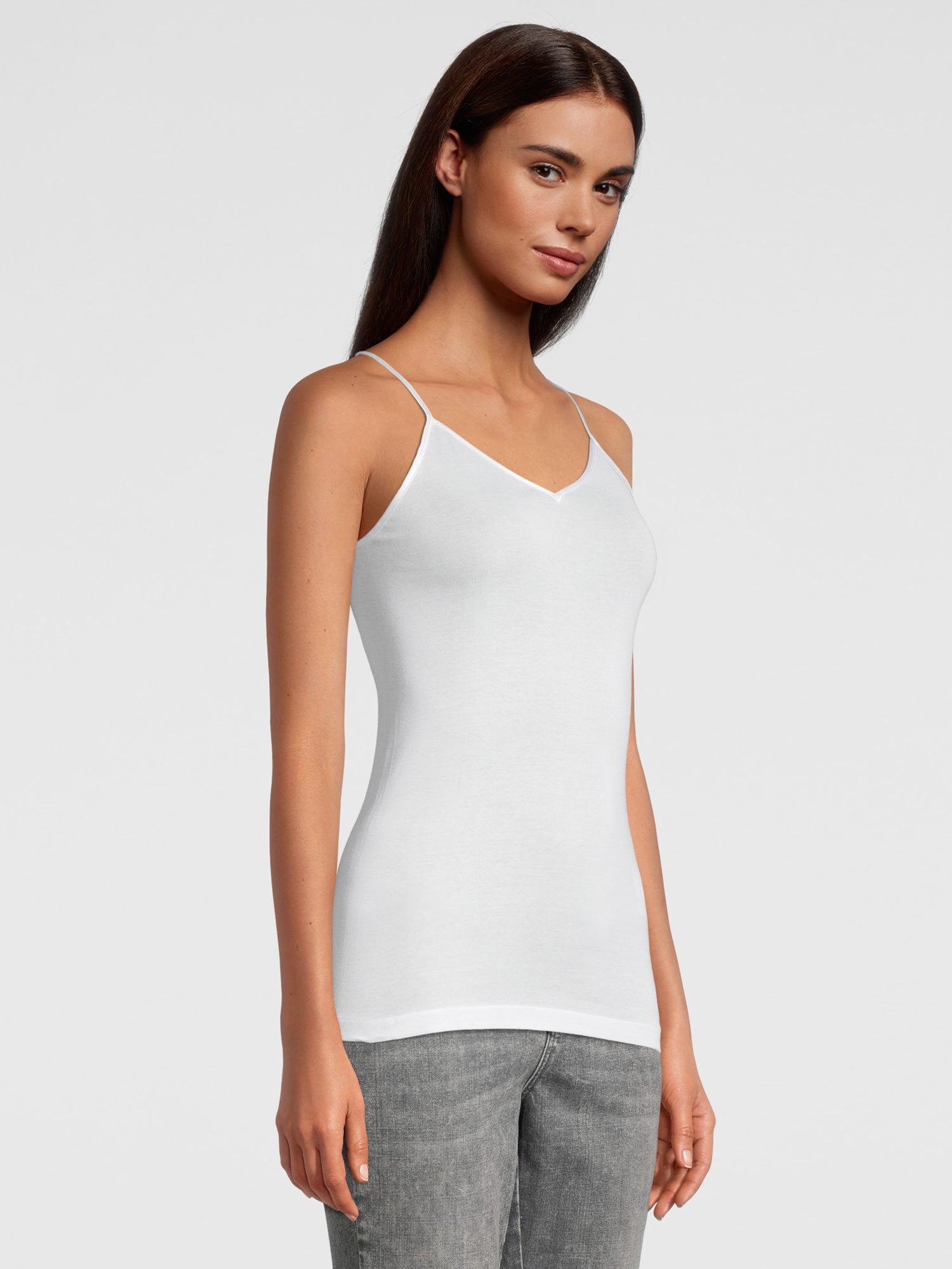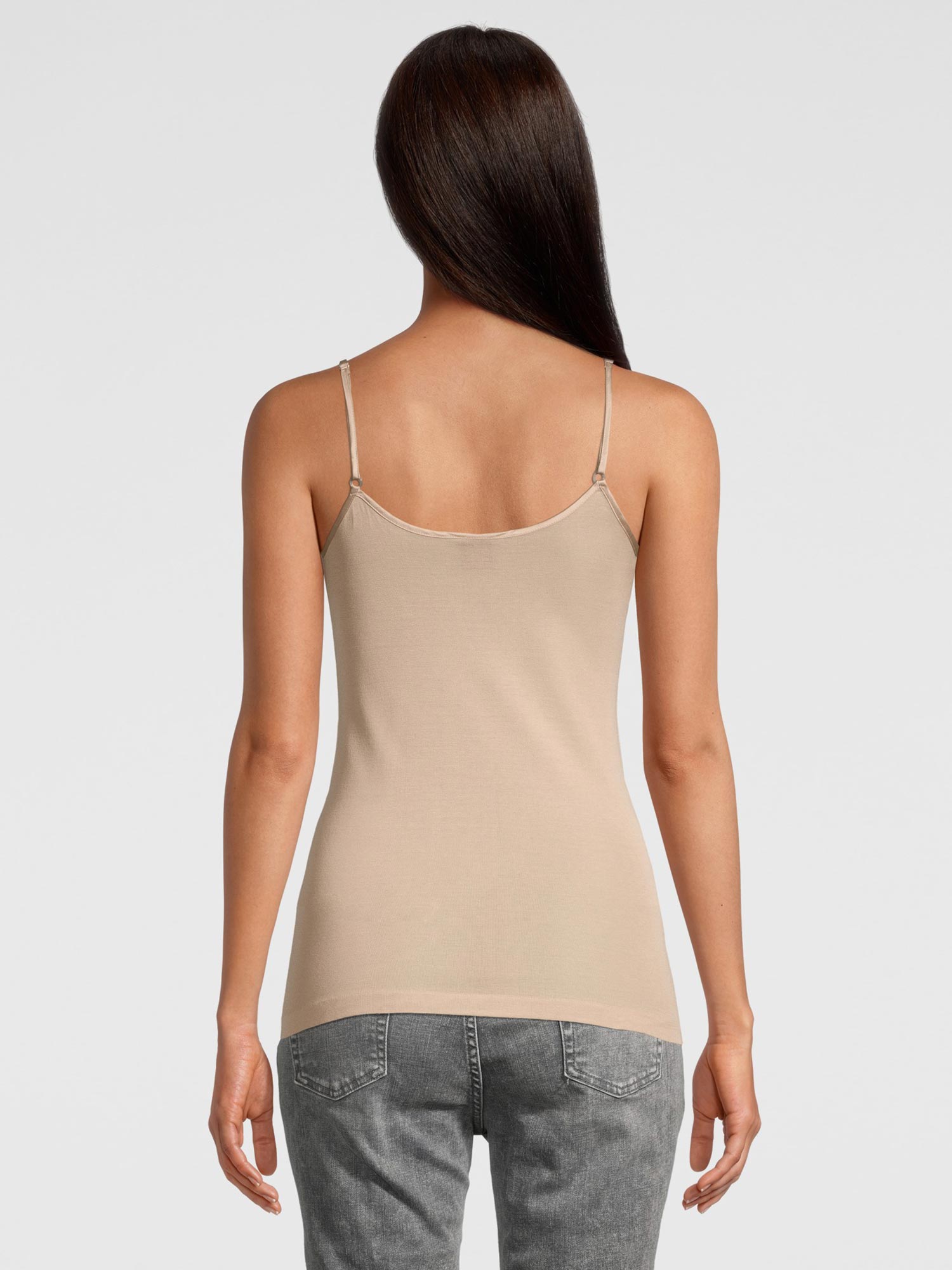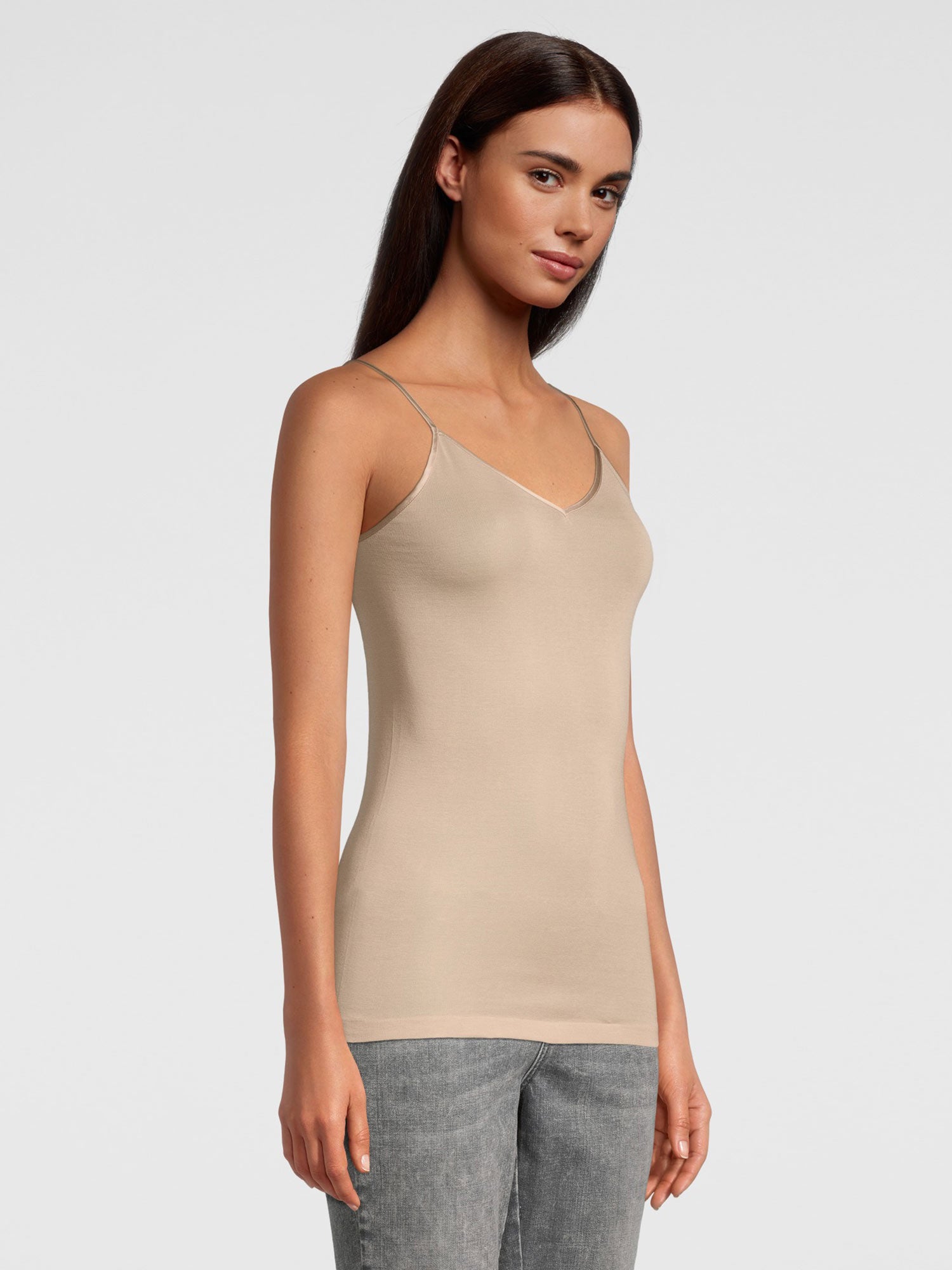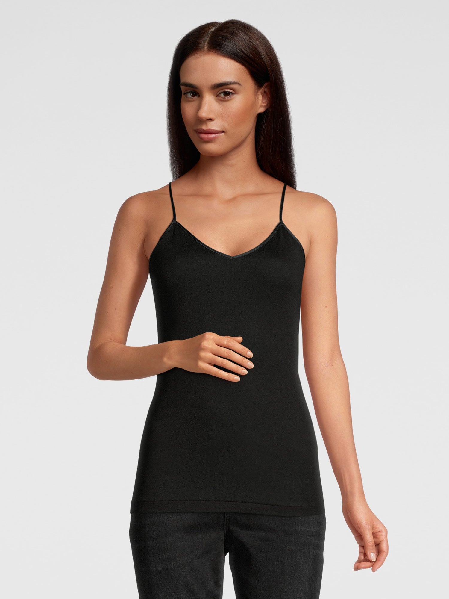 优雅的V领被低调的缎面滚边环绕,为简约的设计增添了一丝精致的女性魅力。由于可调节的细肩带和无缝处理,这款顶部如同第二层肌肤般合身——优雅、舒适且永恒之美。
