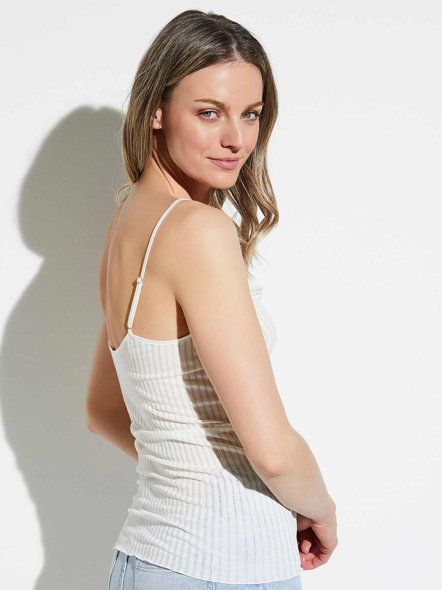 斯帕格顶 在由棉制成的 Ajouré-Feinripp 中,带有蕾丝,来自系列 260 MAUDE PRIVÉ 的 Zimmerli