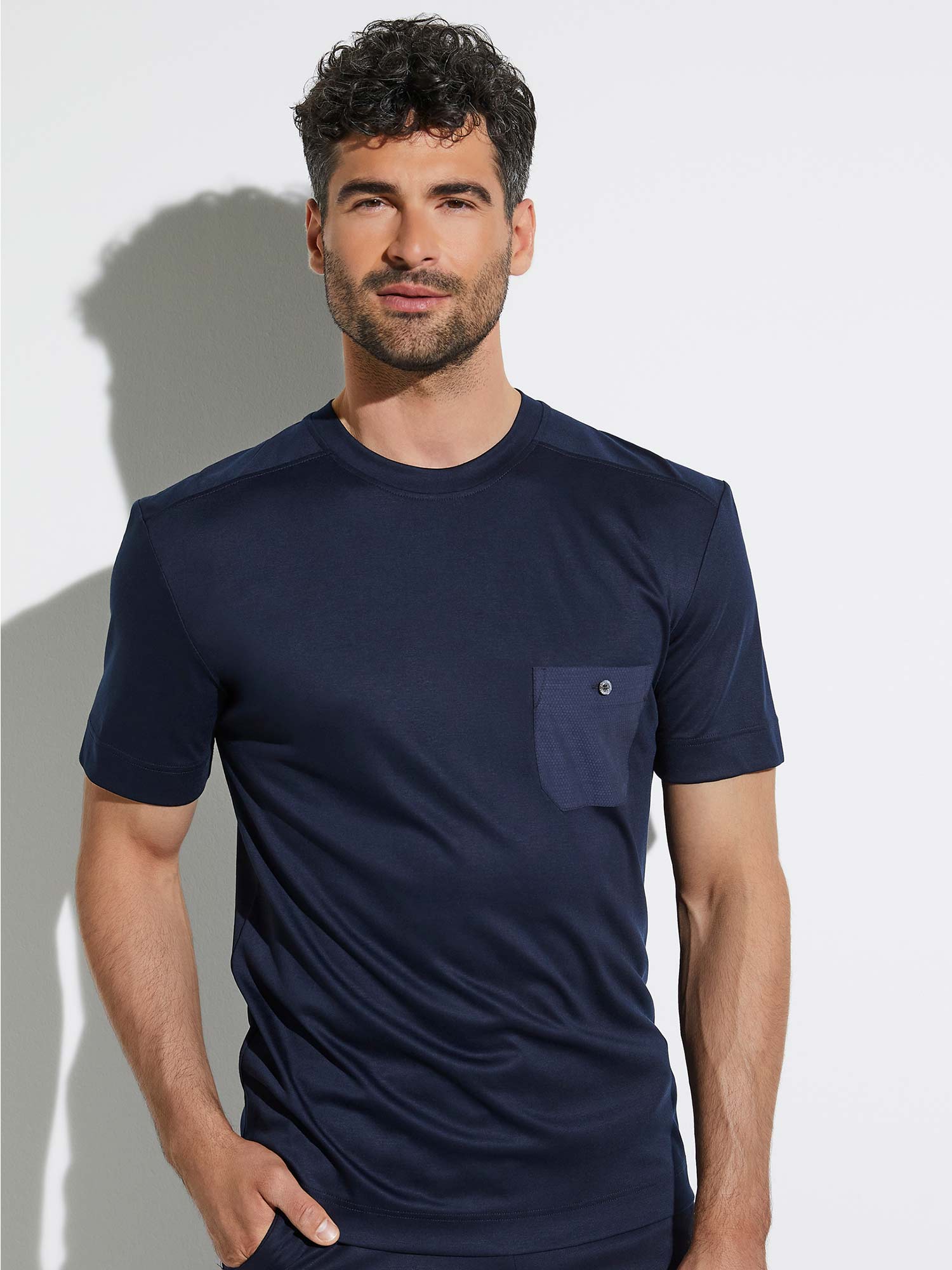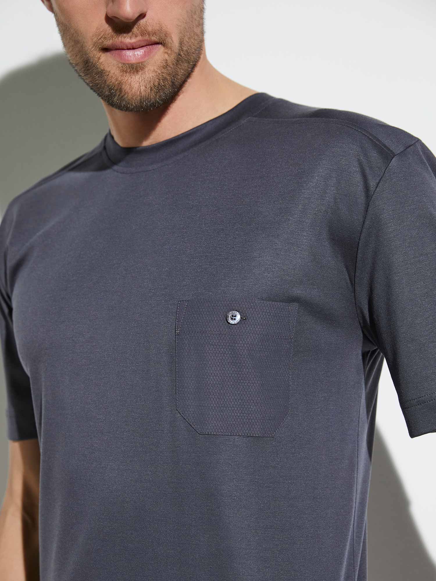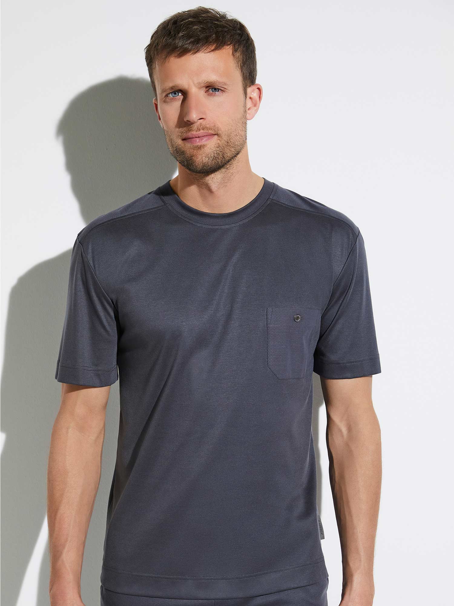 带有圆领的T恤,由50%棉和50%微模态制成,来自Zimmerli的8520 MODERN LOUNGE系列