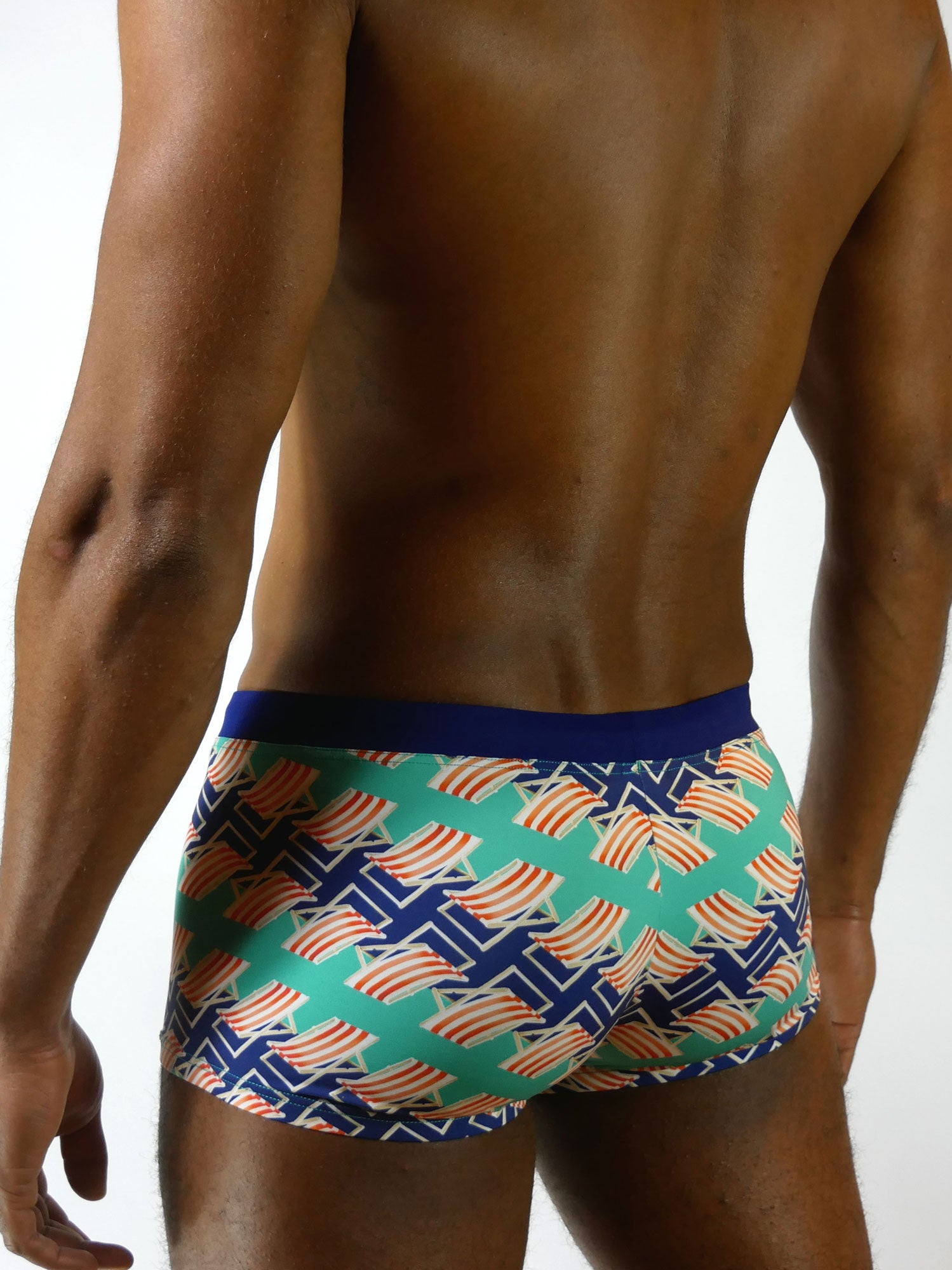 以新鲜色彩的大胆独特面料图案泳裤而闻名,例如金鱼、柠檬或香蕉,以及以特殊面料质量如提花织物或弹性织物制成的超级经典风格的款式。